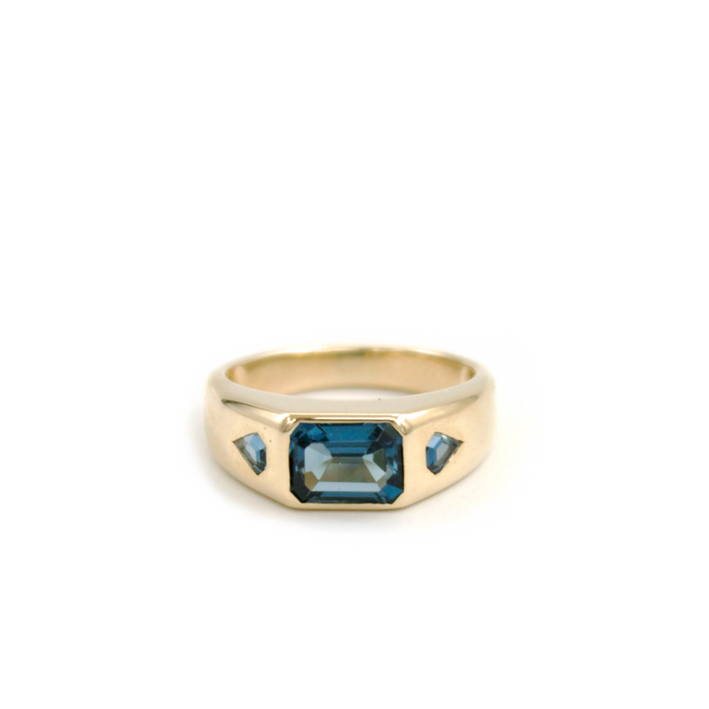 Solid 10k Gold, London Blue Topaz, and Diamond Ring