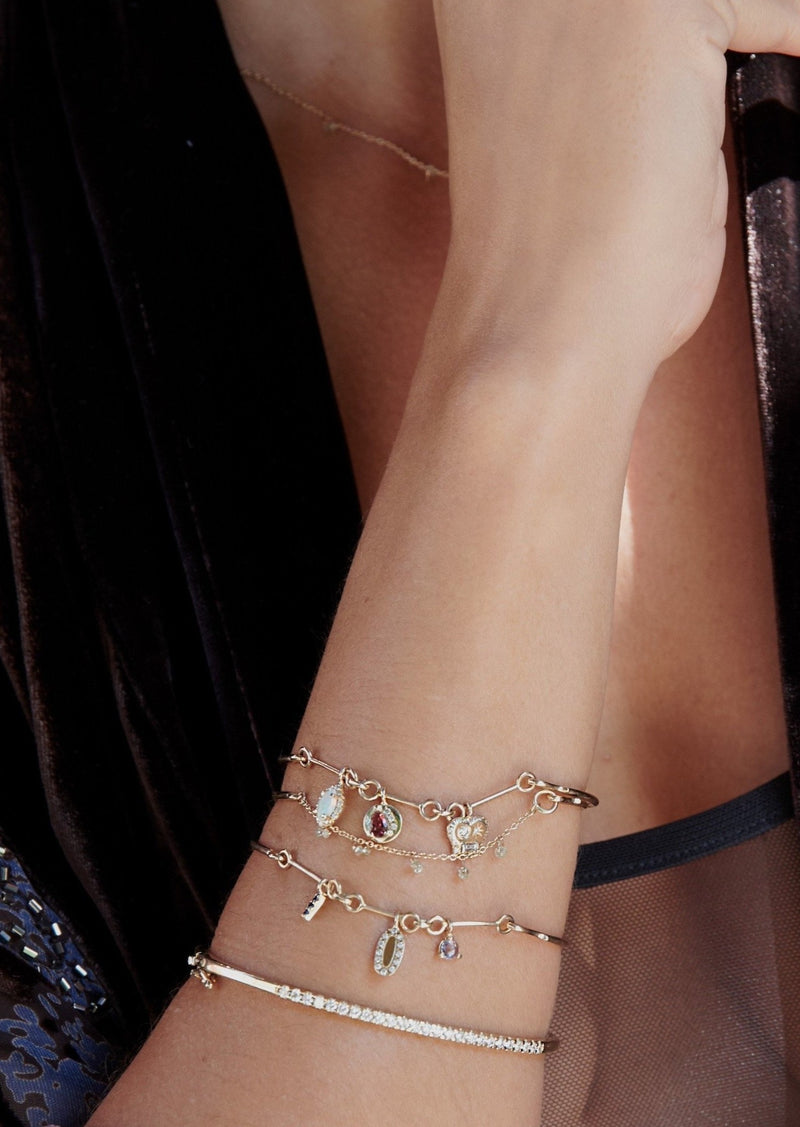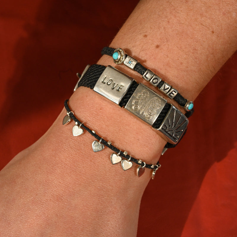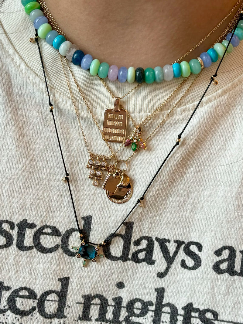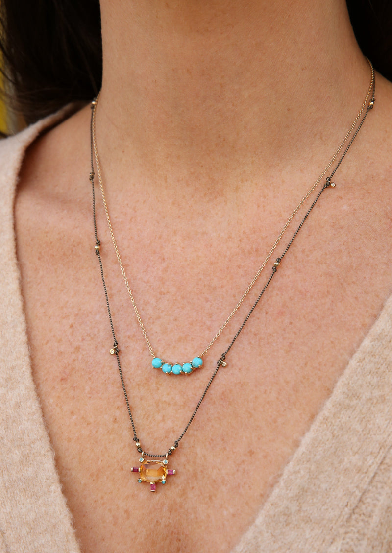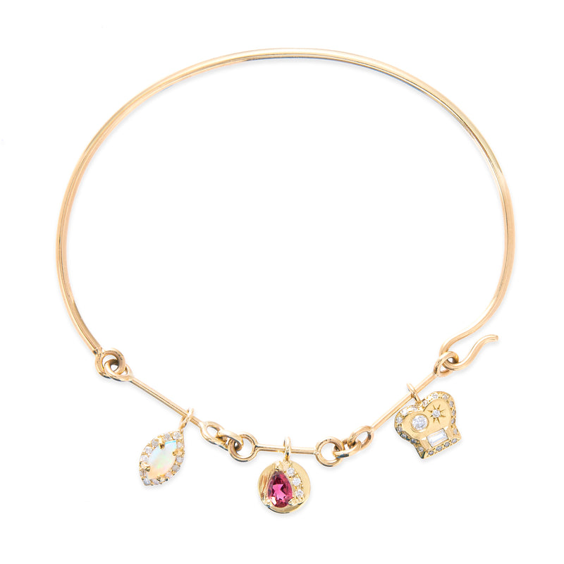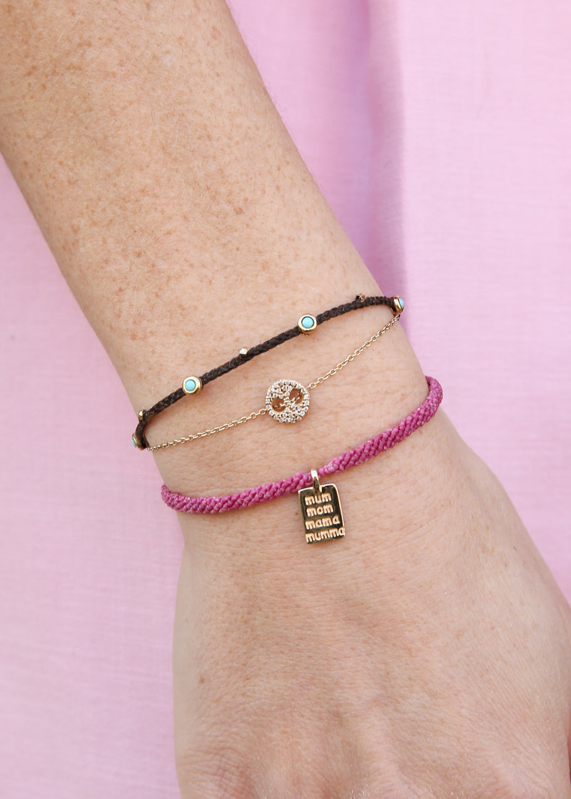 14k gold vermeil and turquoise charm bracelet in chocolate