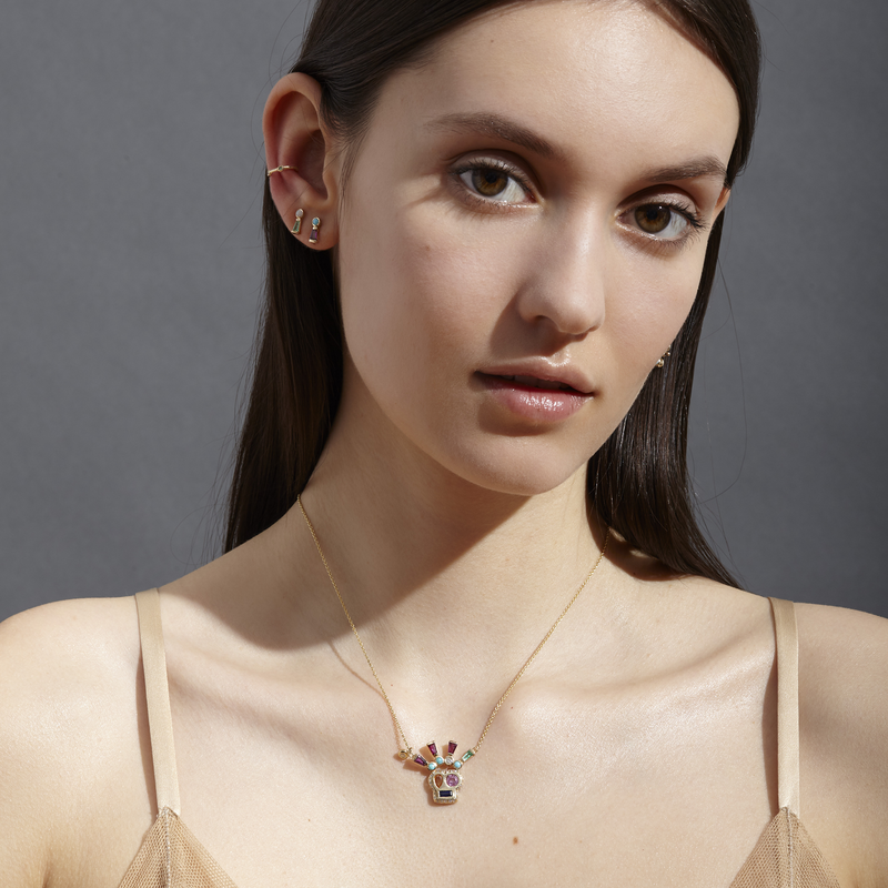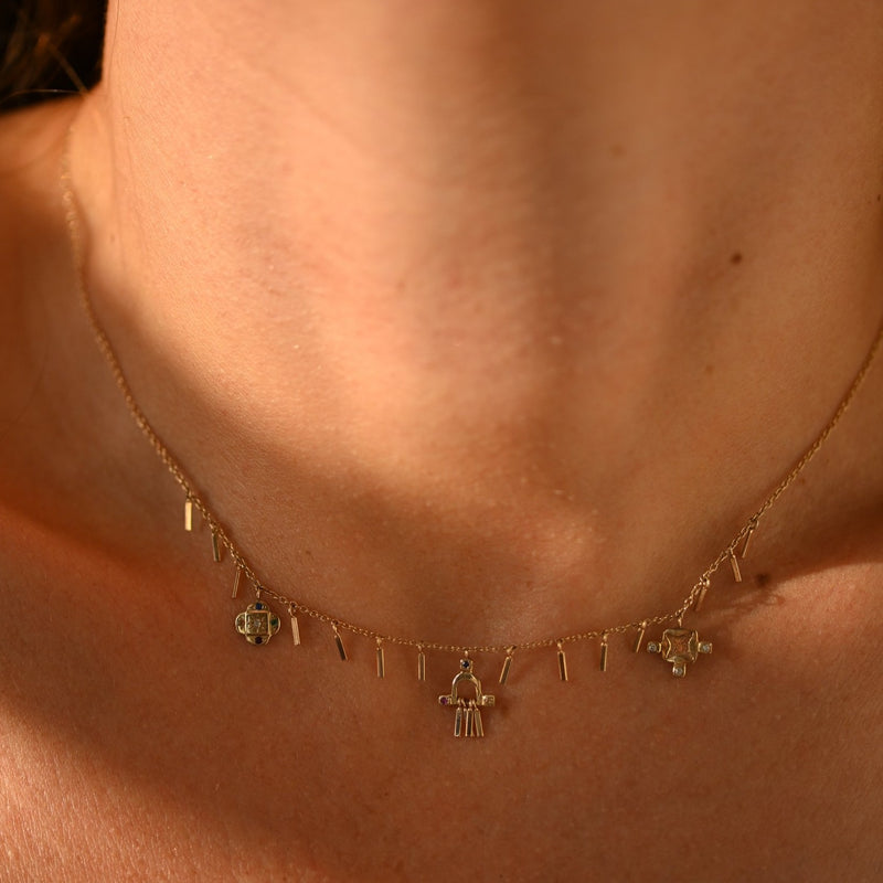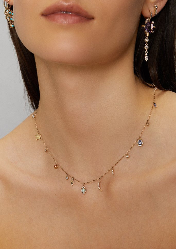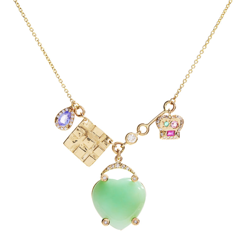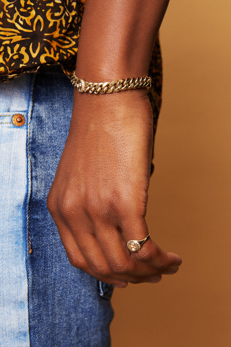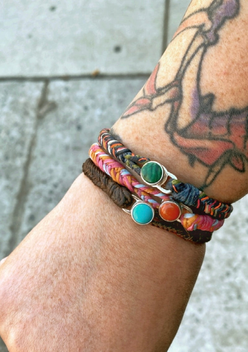 14k gold vermeil and turquoise charm bracelet in chocolate