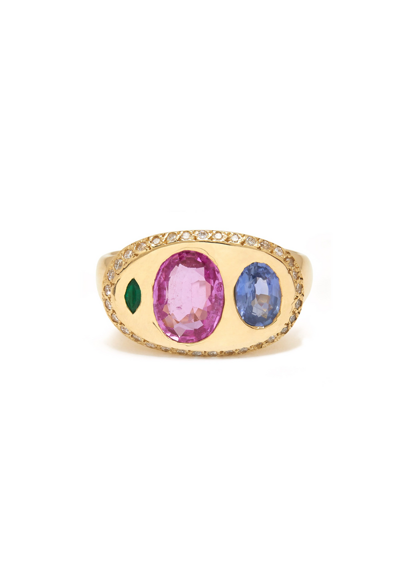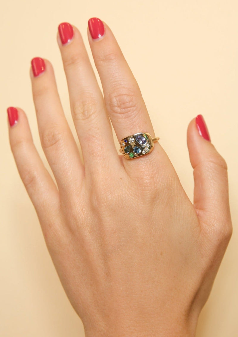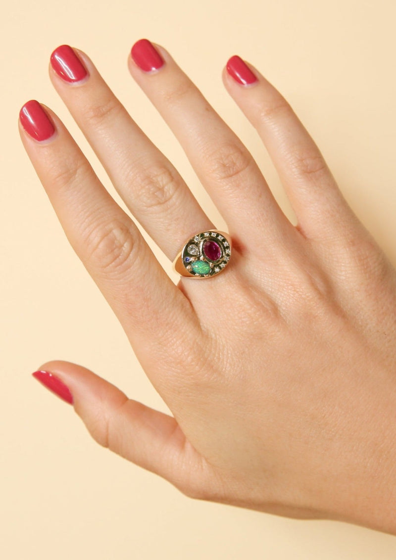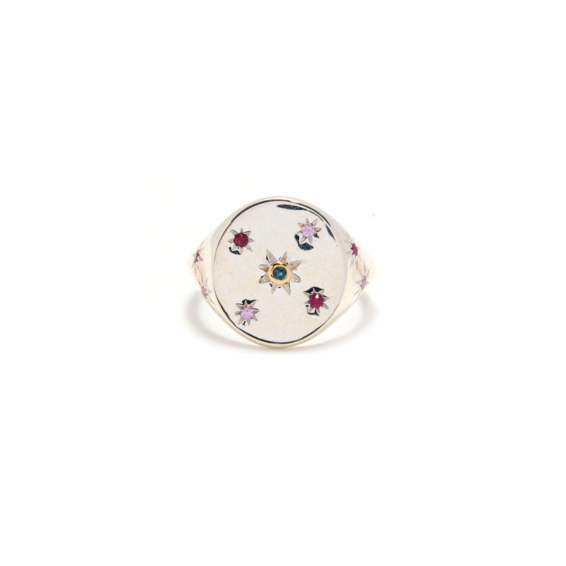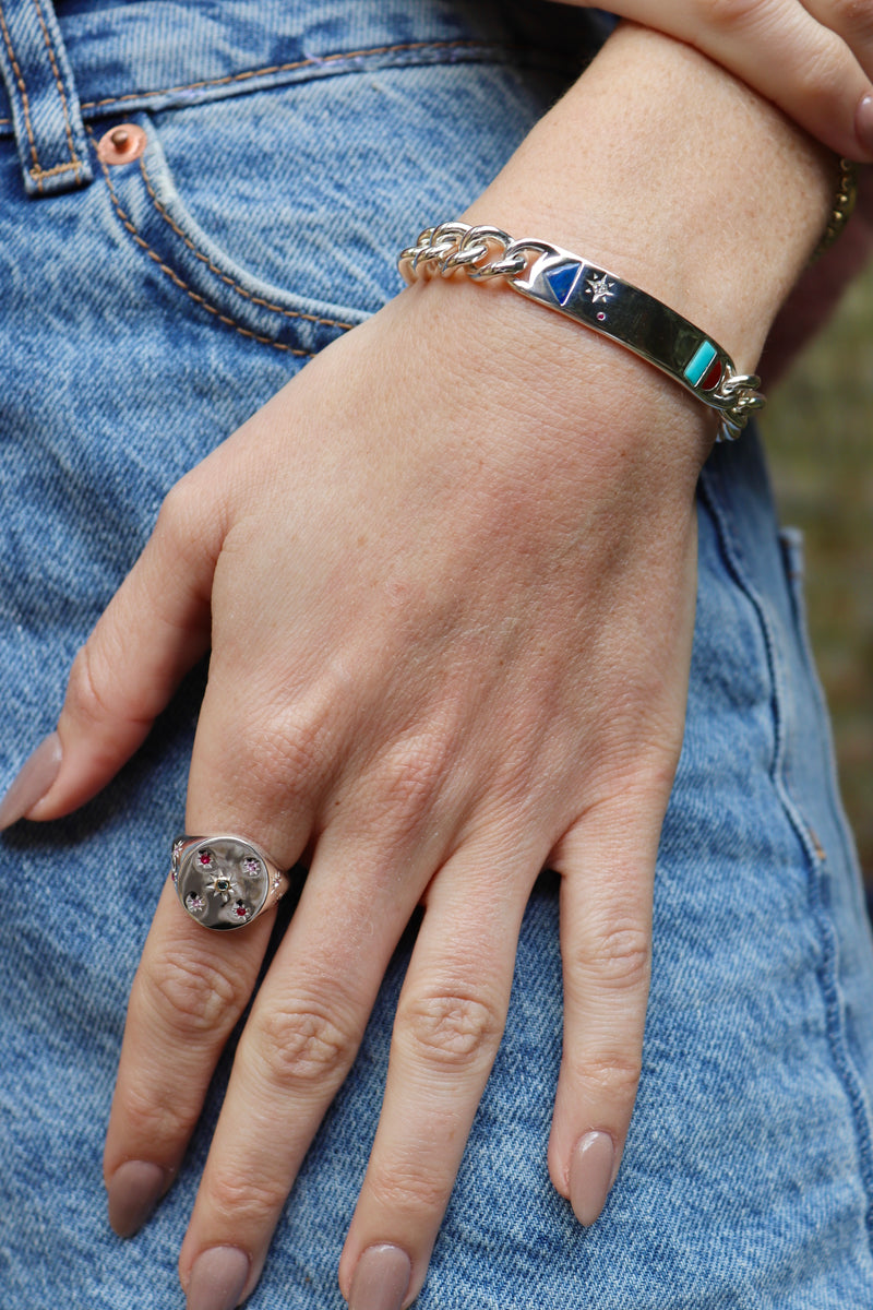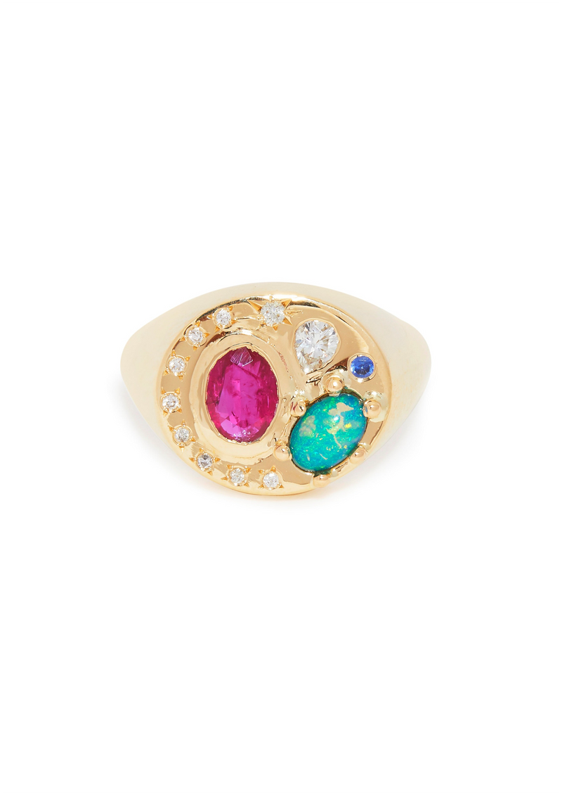 Sterling Silver, Gold, and Mixed Gem Signet Ring