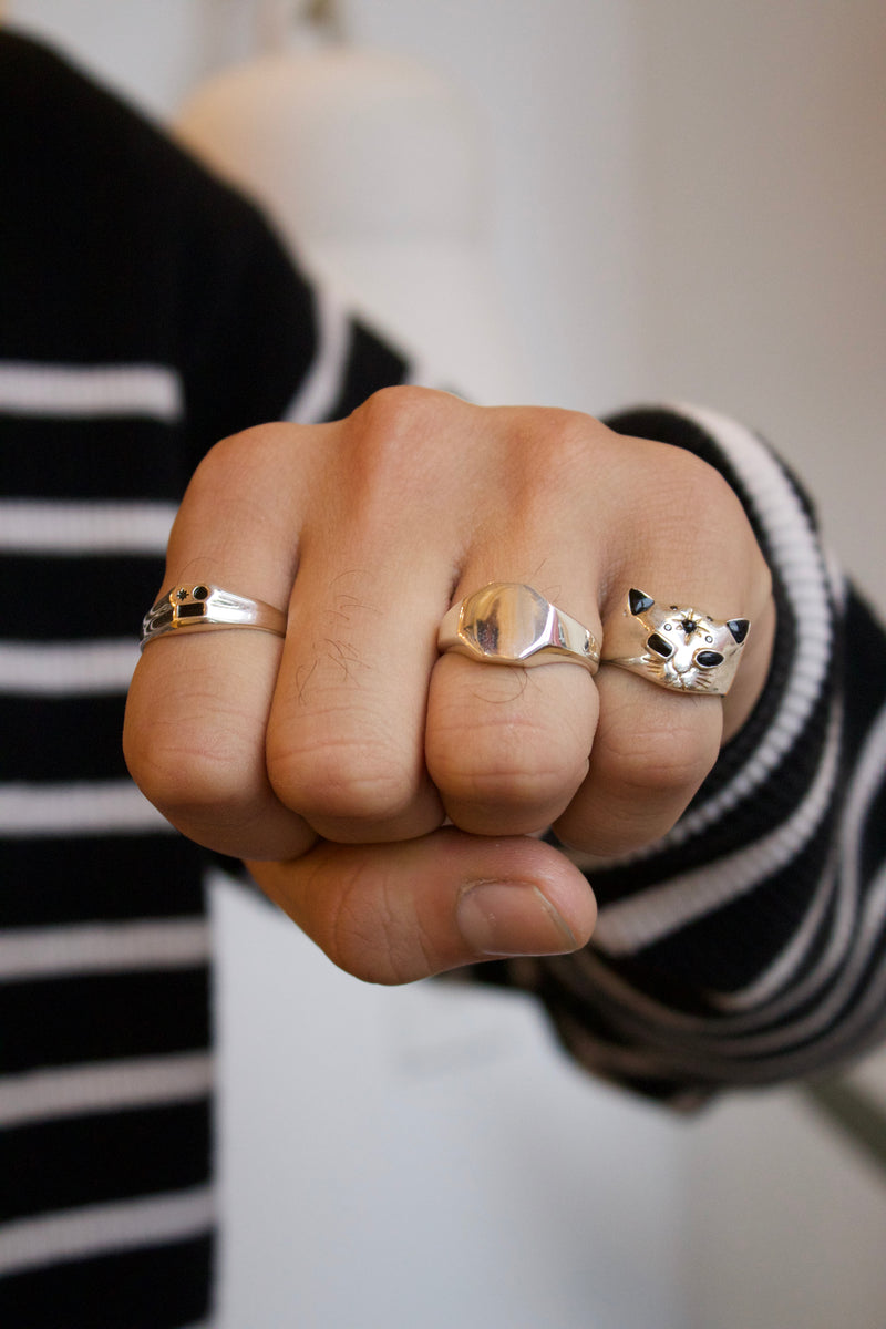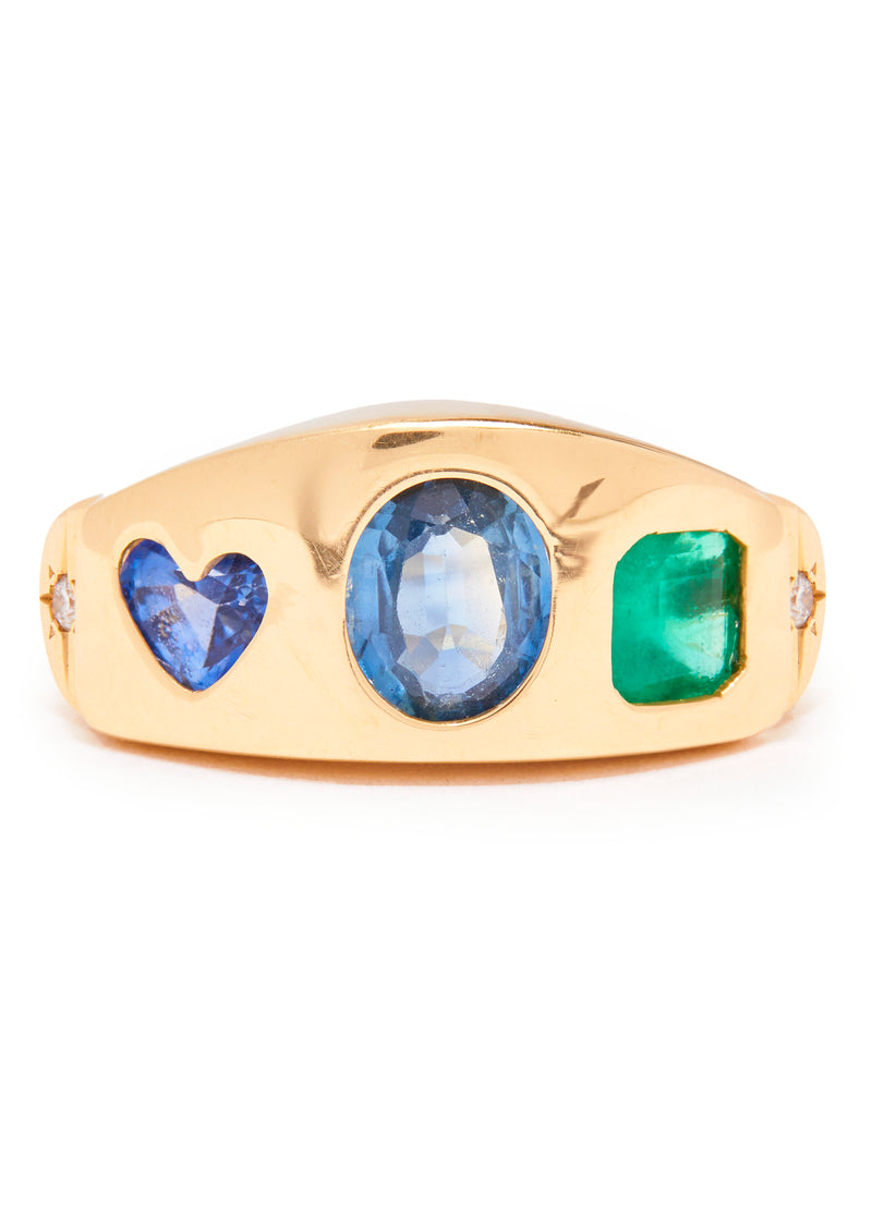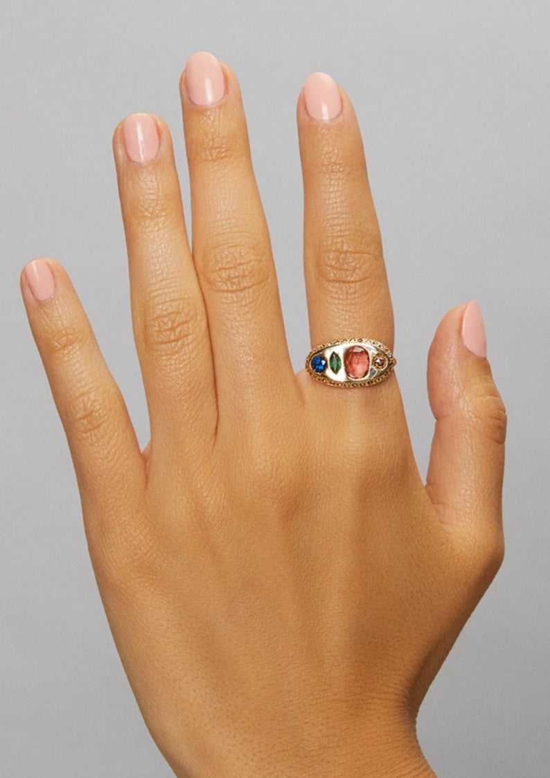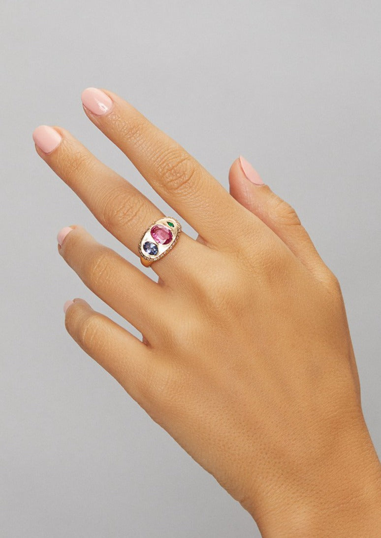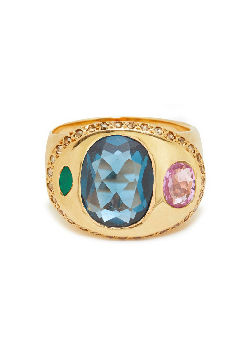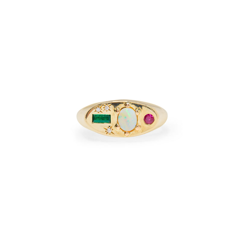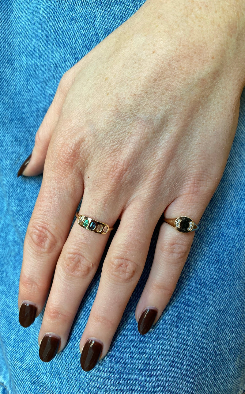 Sterling Silver, Gold, and Mixed Gem Signet Ring