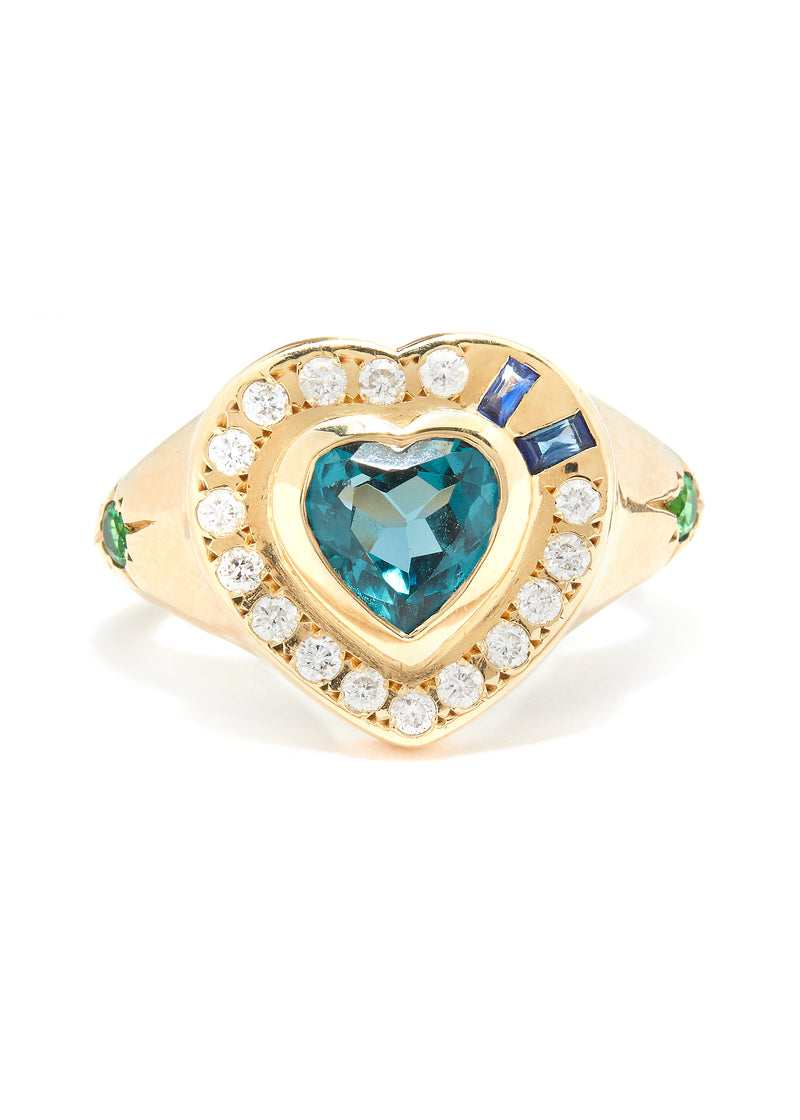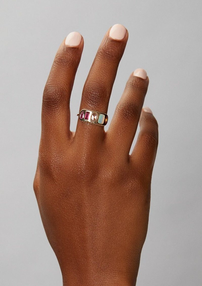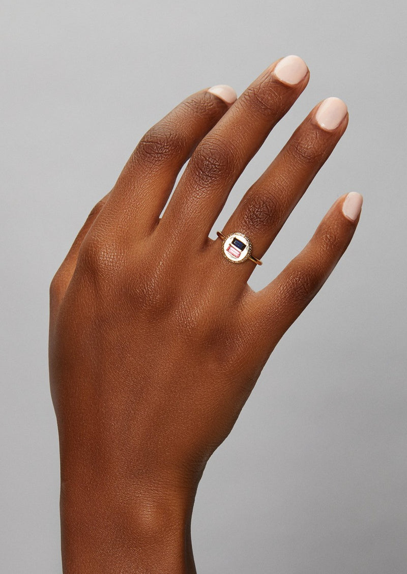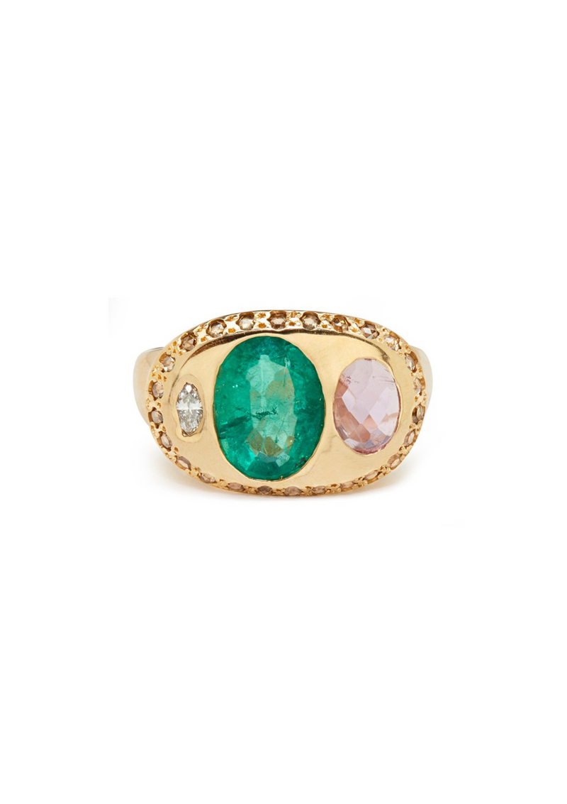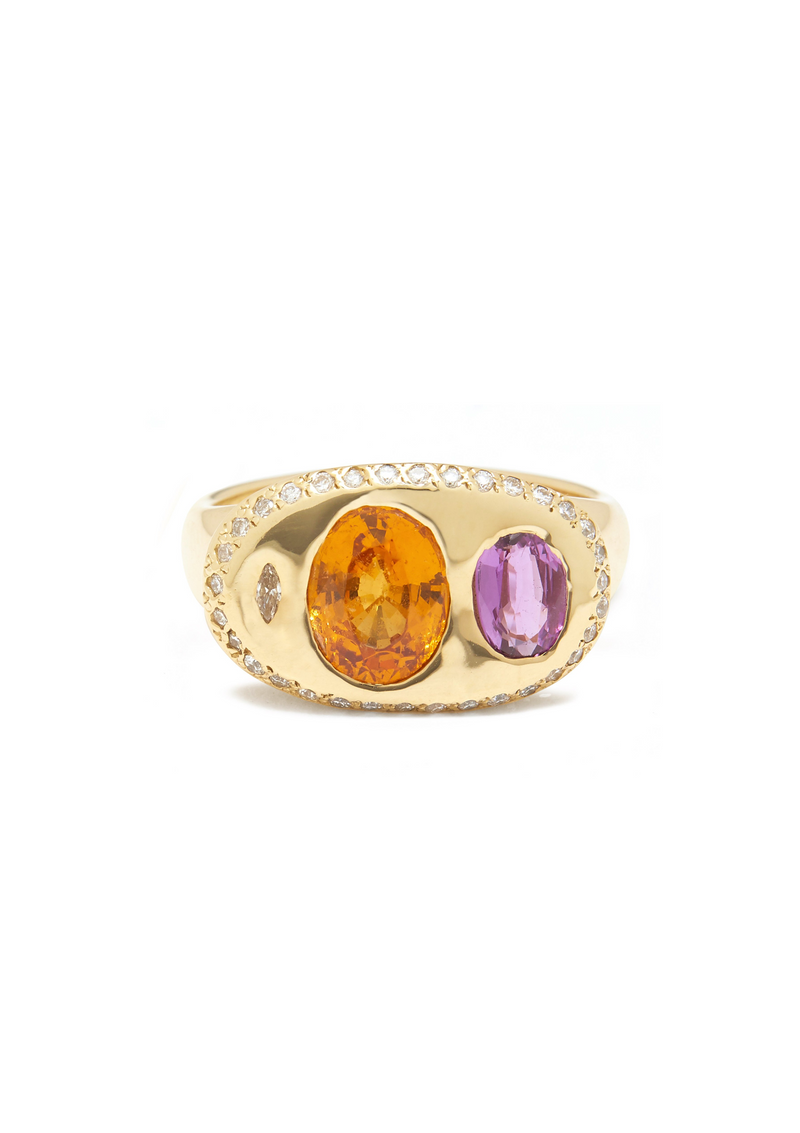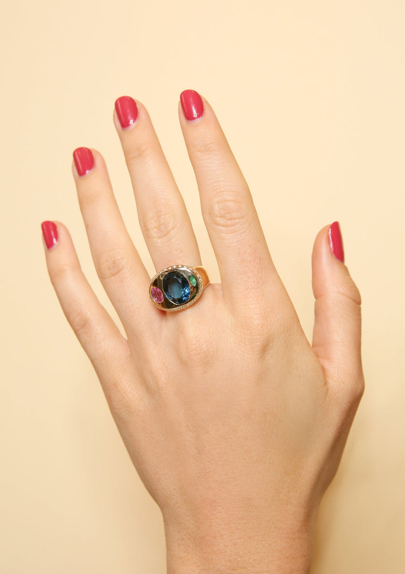 Sterling Silver, Gold, and Mixed Gem Signet Ring