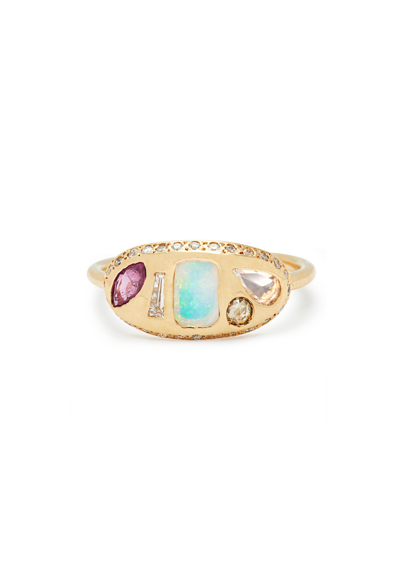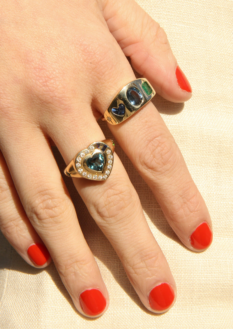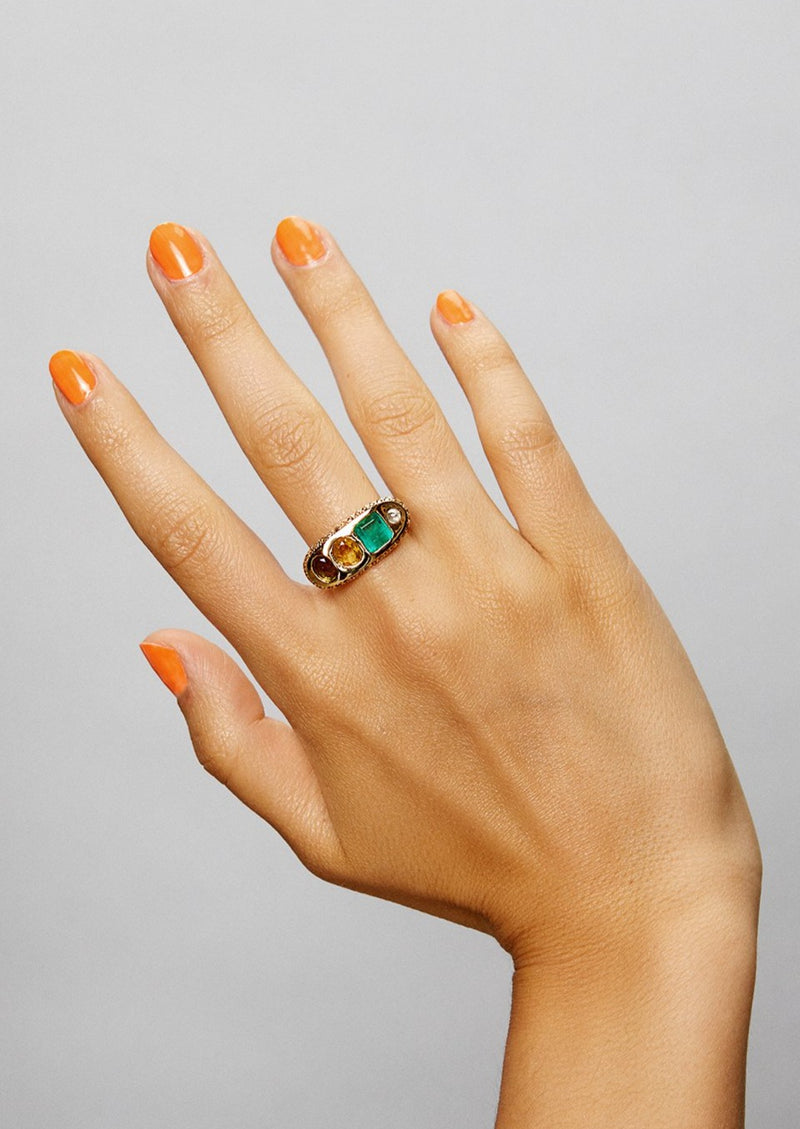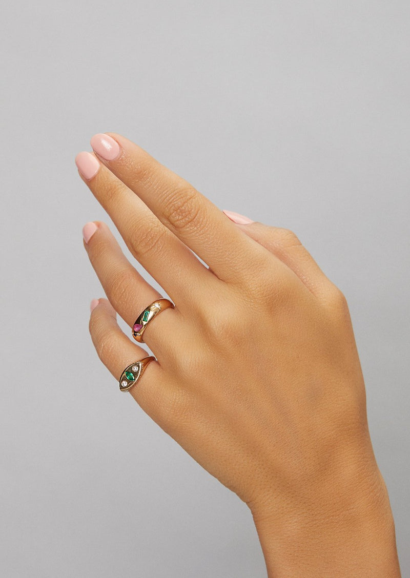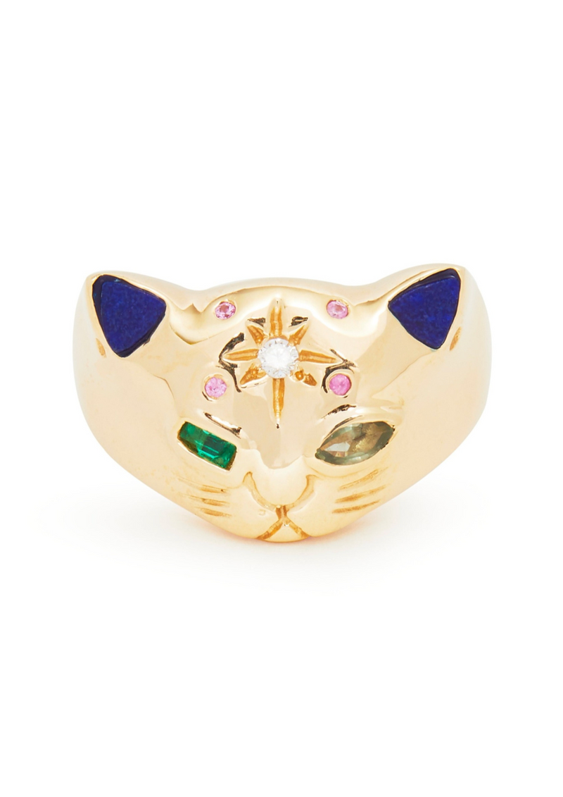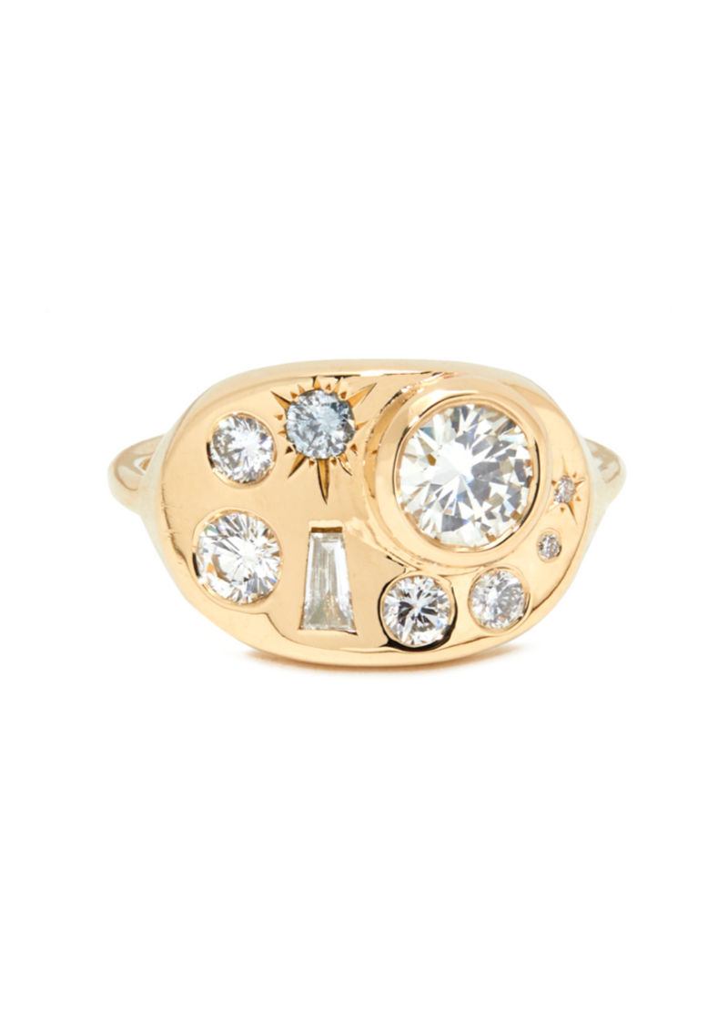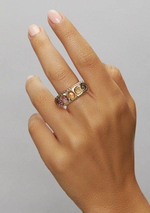 Sterling Silver, Gold, and Mixed Gem Signet Ring