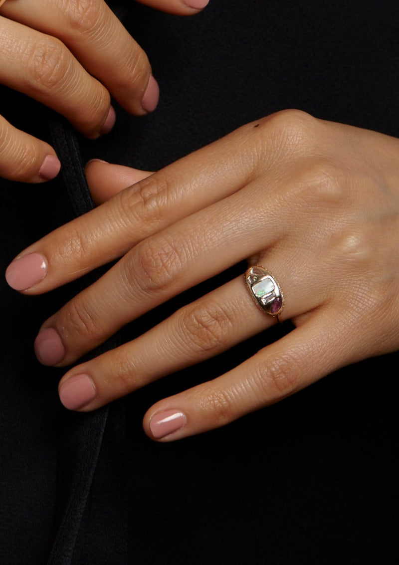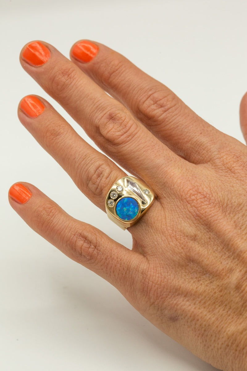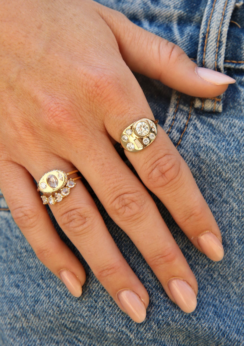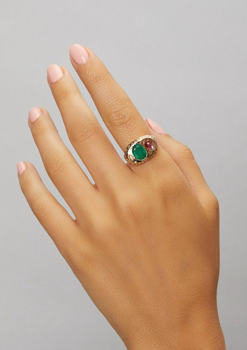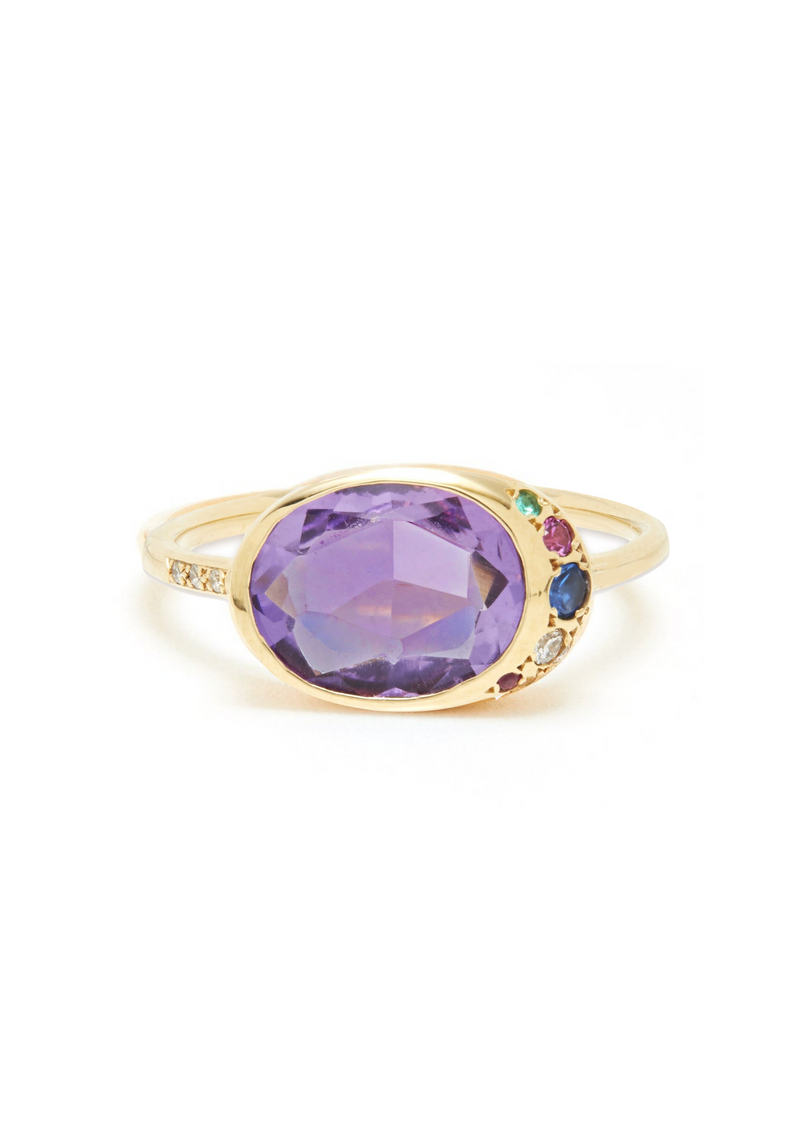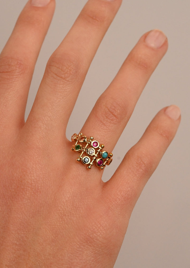 Sterling Silver, Gold, and Mixed Gem Signet Ring