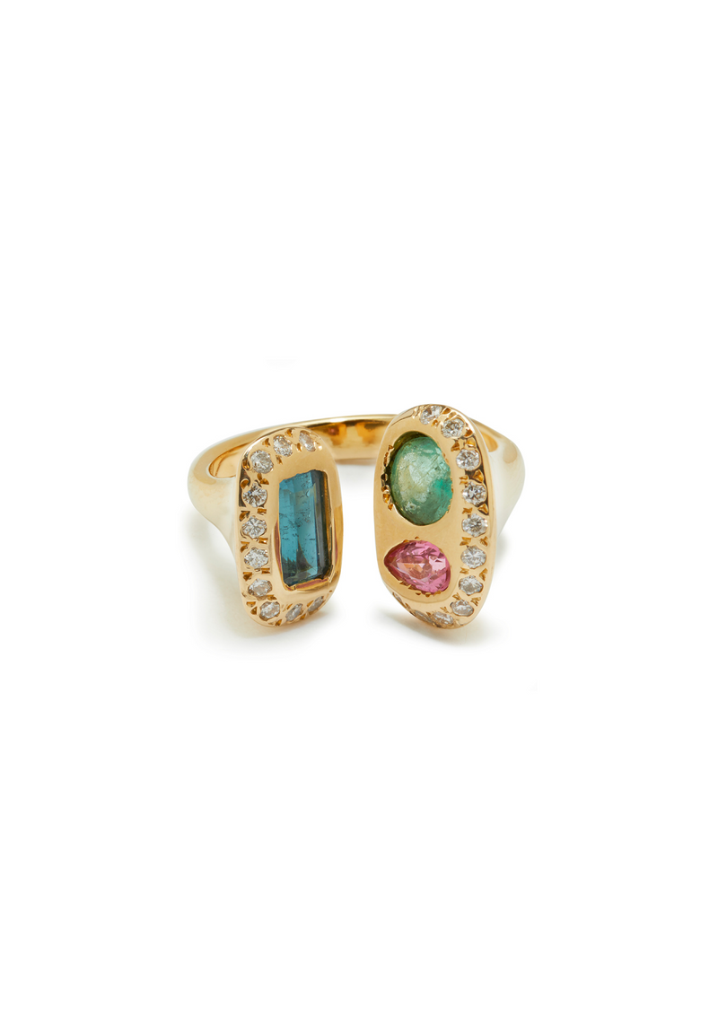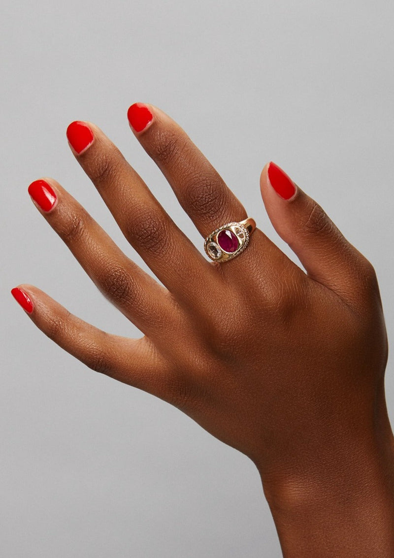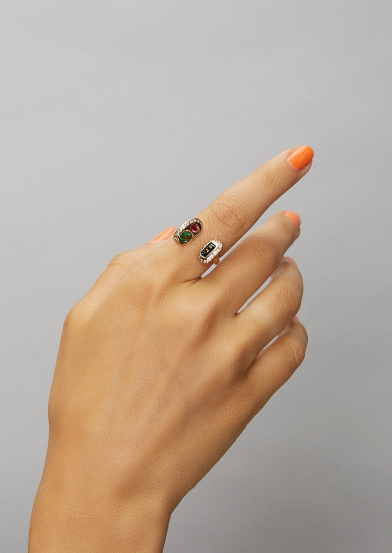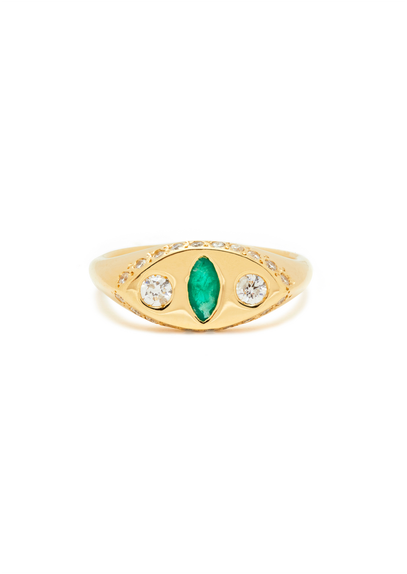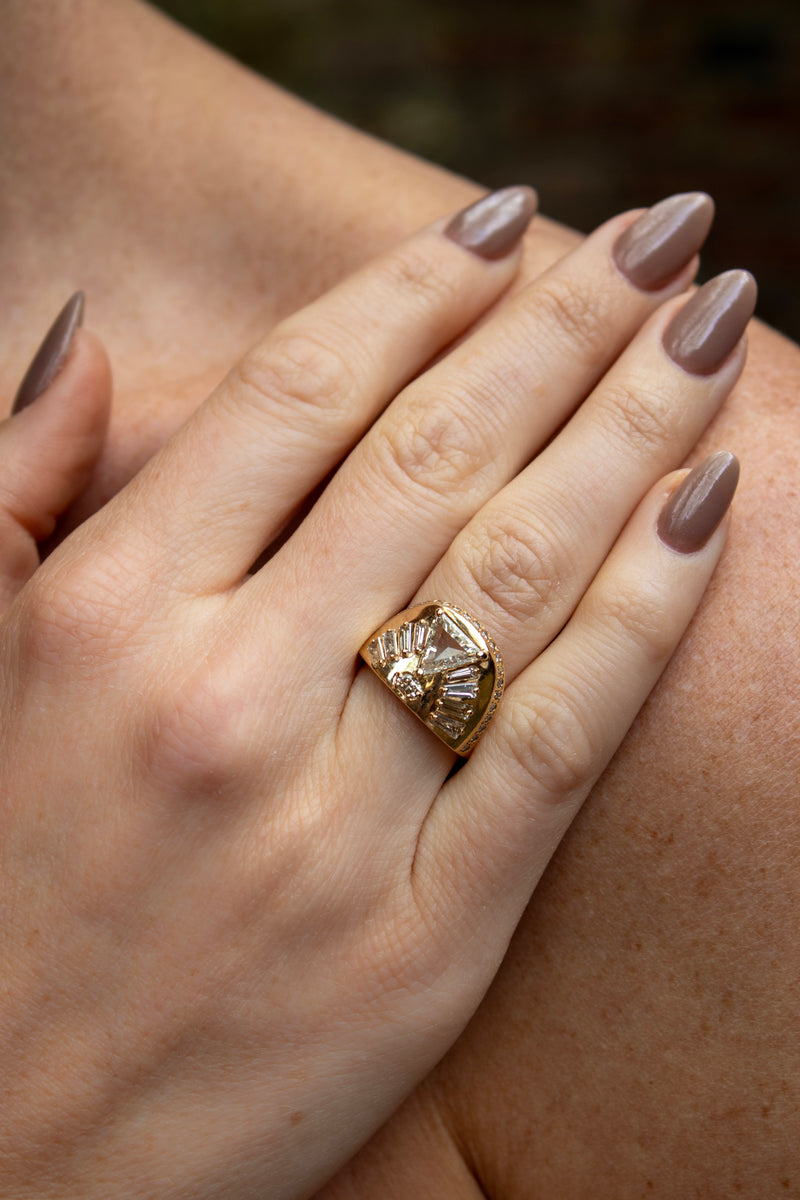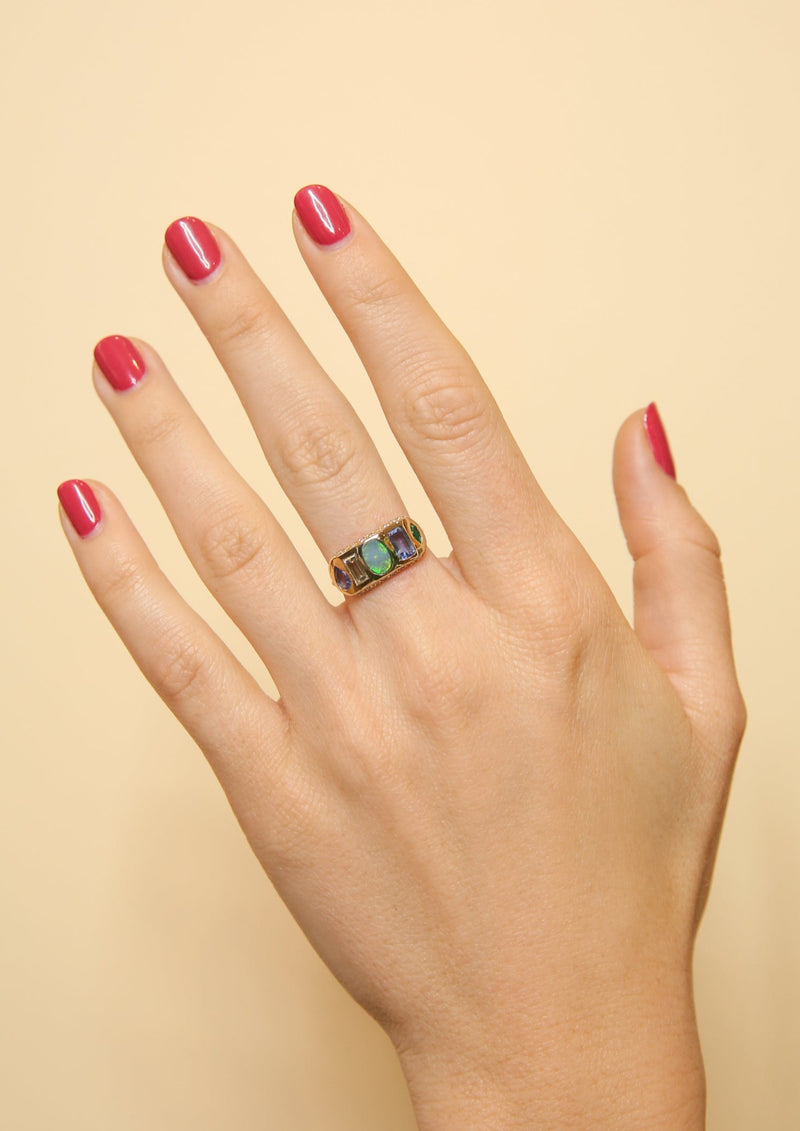Sterling Silver, Gold, and Mixed Gem Signet Ring