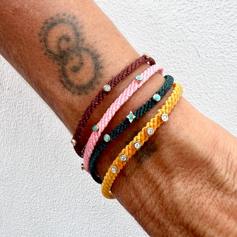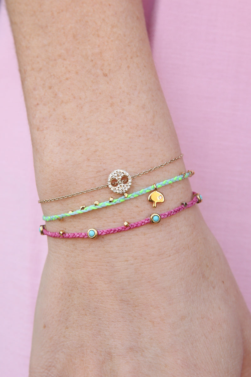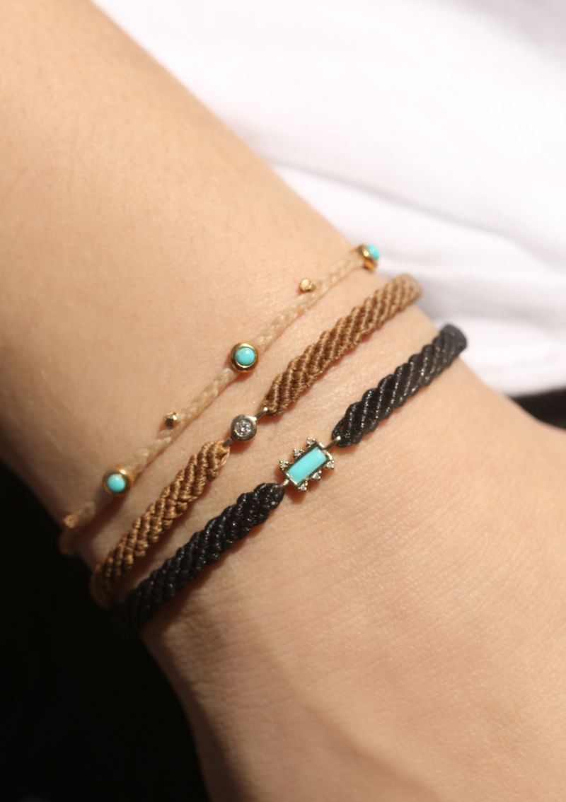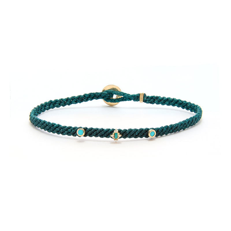 Gold, Turquoise, and Diamond Macrame Bracelet