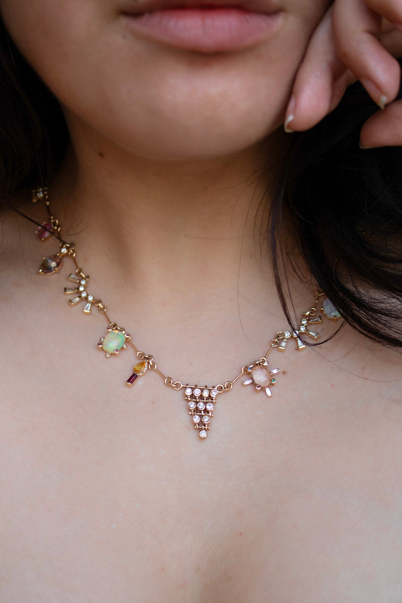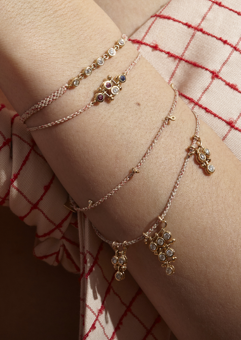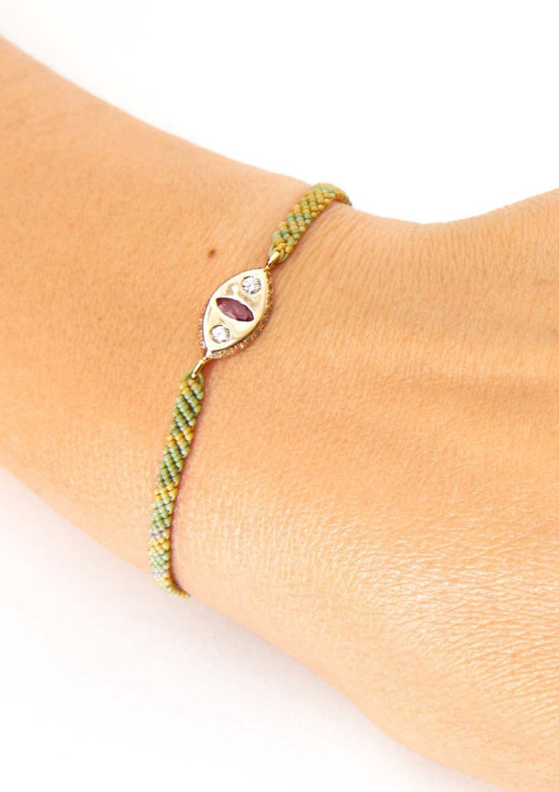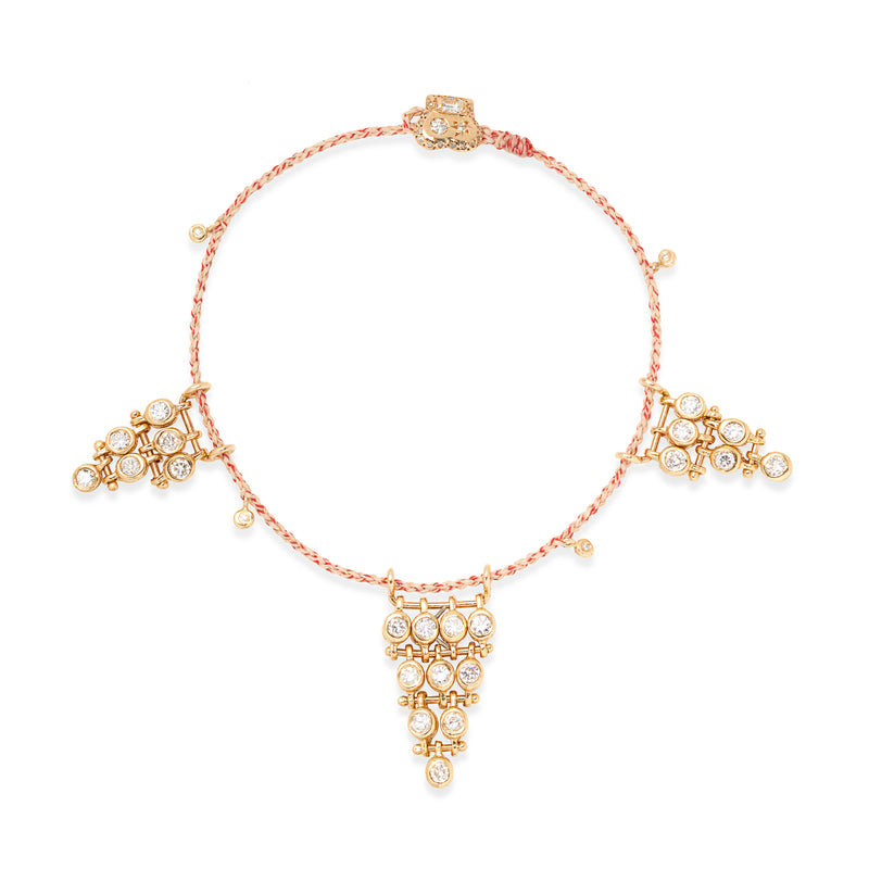 Gold, Turquoise, and Diamond Macrame Bracelet