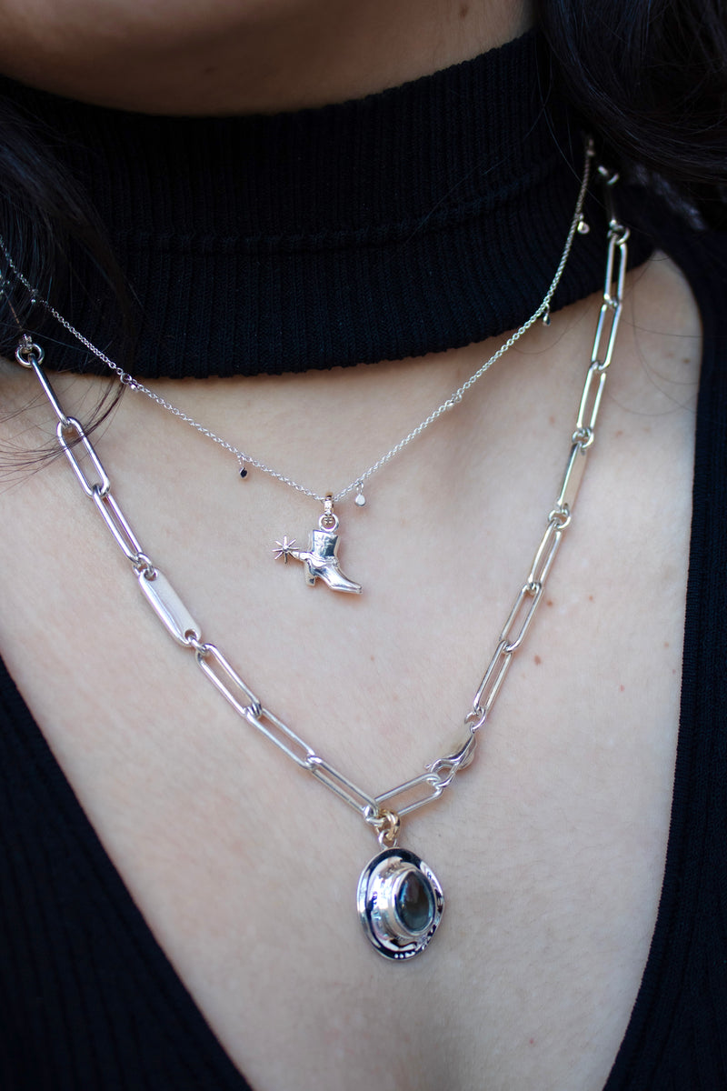 Sterling Silver Cowboy boot with diamonds and 10K Gold Spur