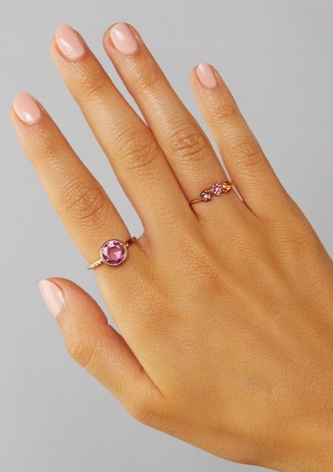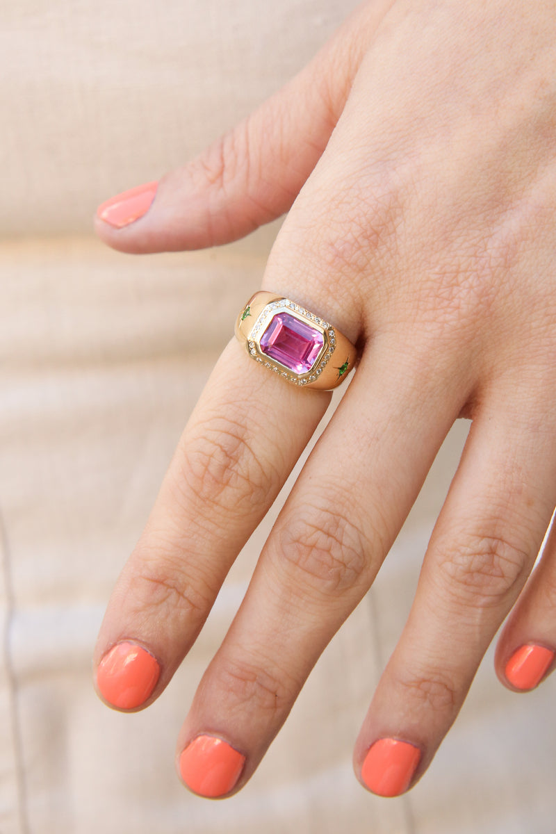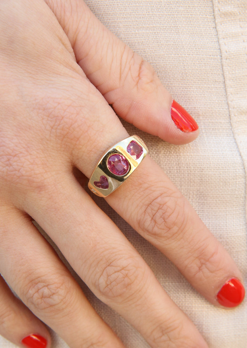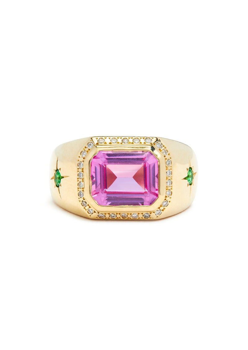 14k Yellow Gold Trillion Pink Sapphire Ring