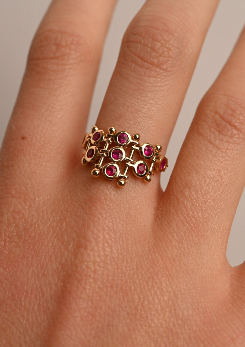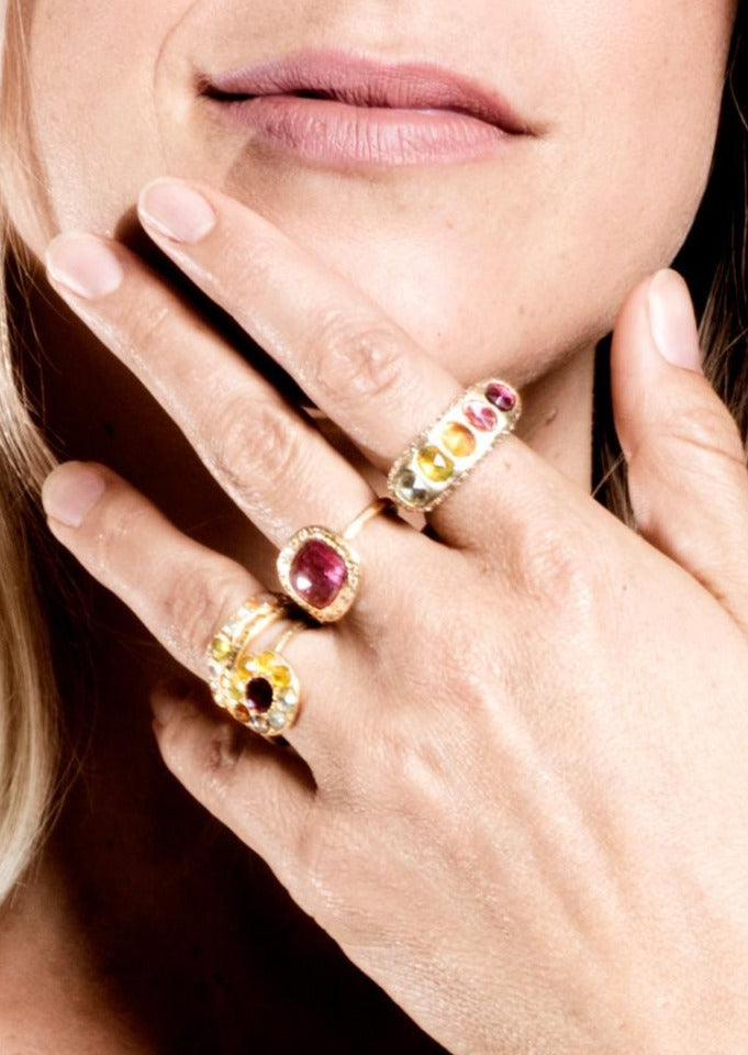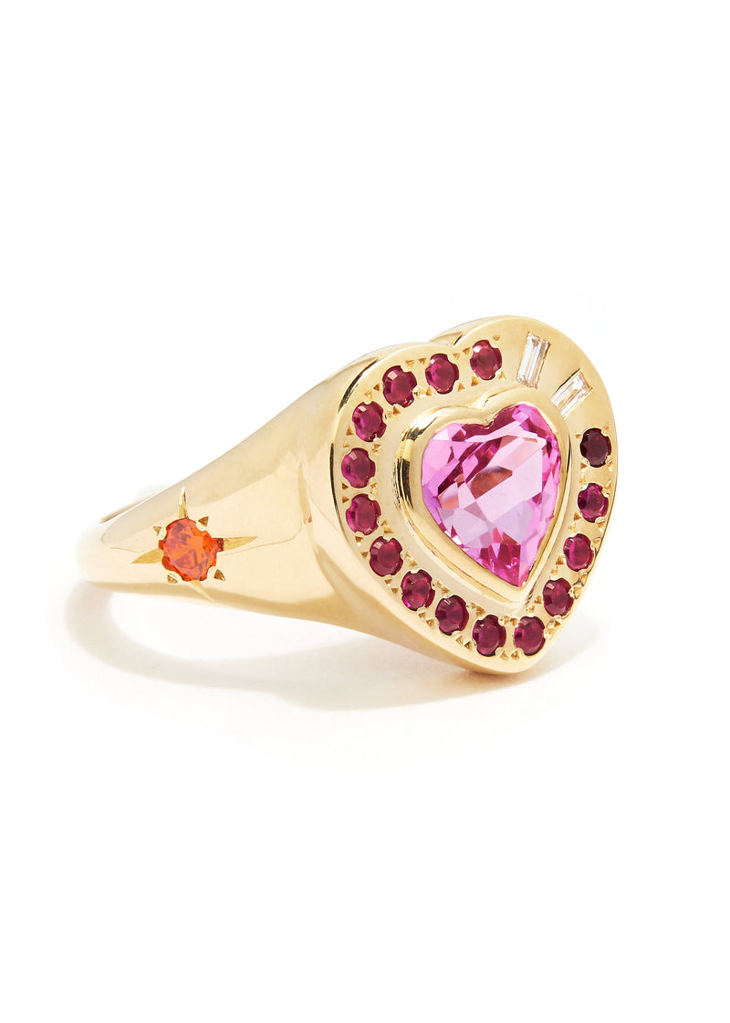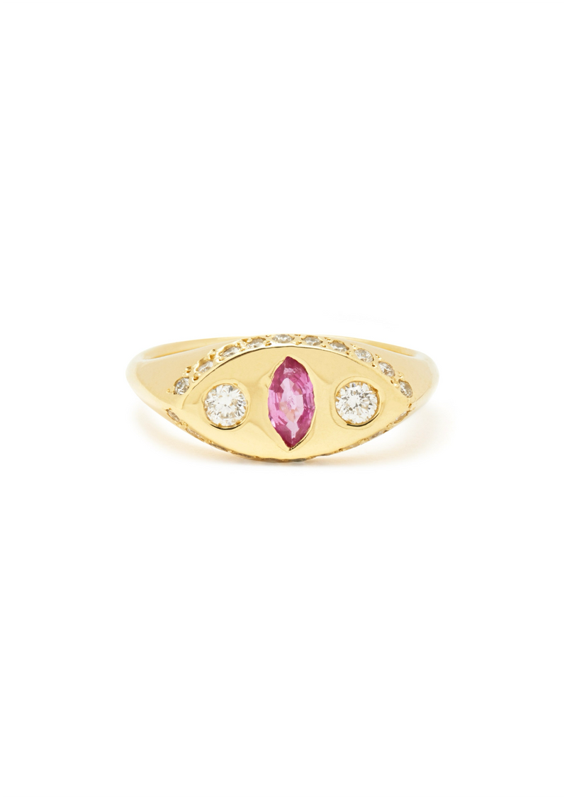 14k Yellow Gold Trillion Pink Sapphire Ring