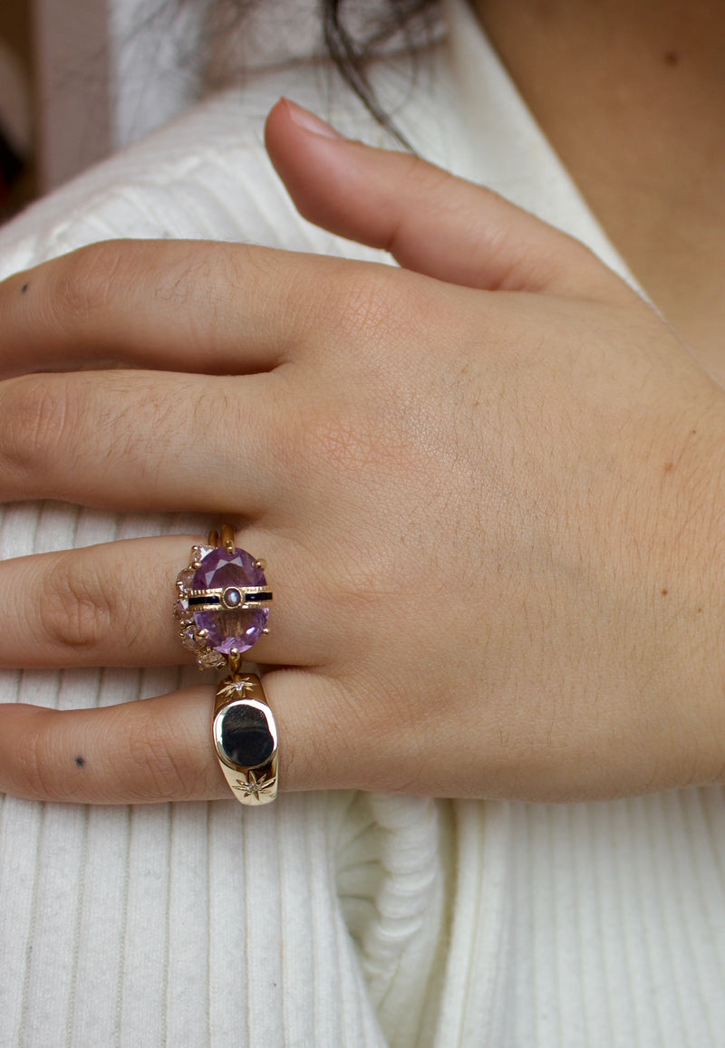 Solid 10k Gold, Blue Sapphire, and Diamond ring