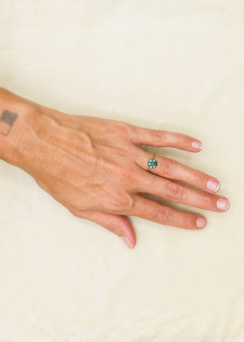 Vintage Zuni Sterling Silver and Turquoise Petit Point Ring