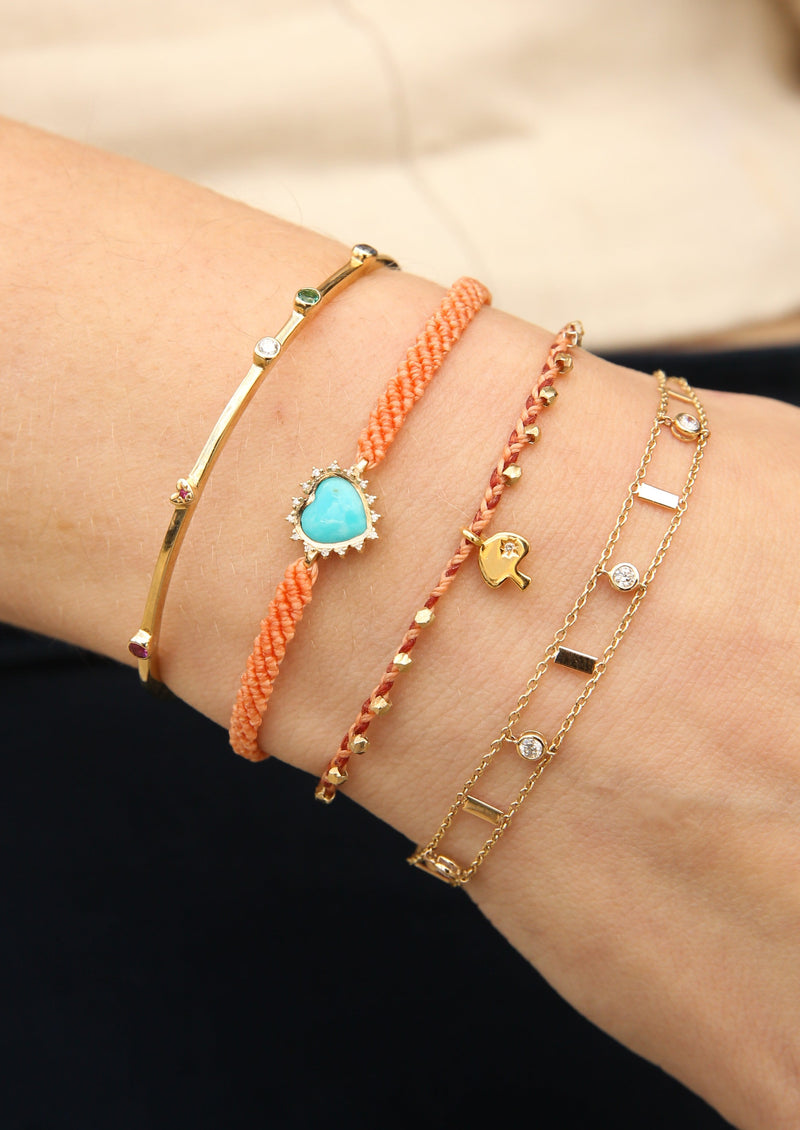 Easygoing Diamond Shroom Charm Bracelet in Peach & Rust