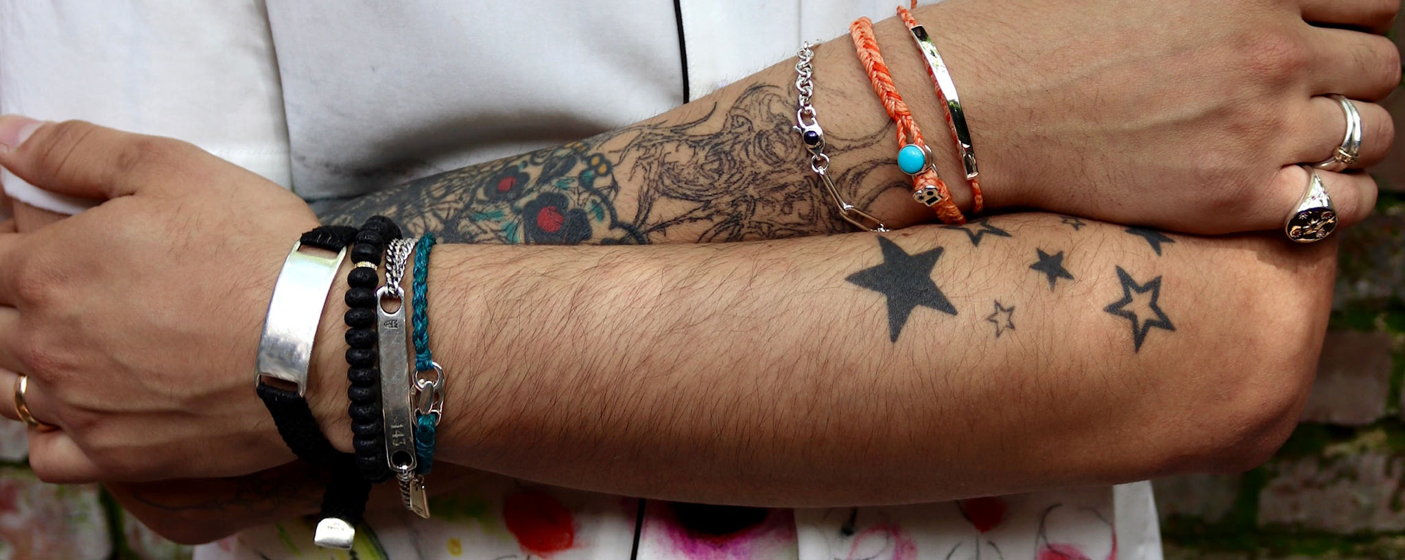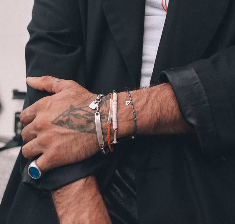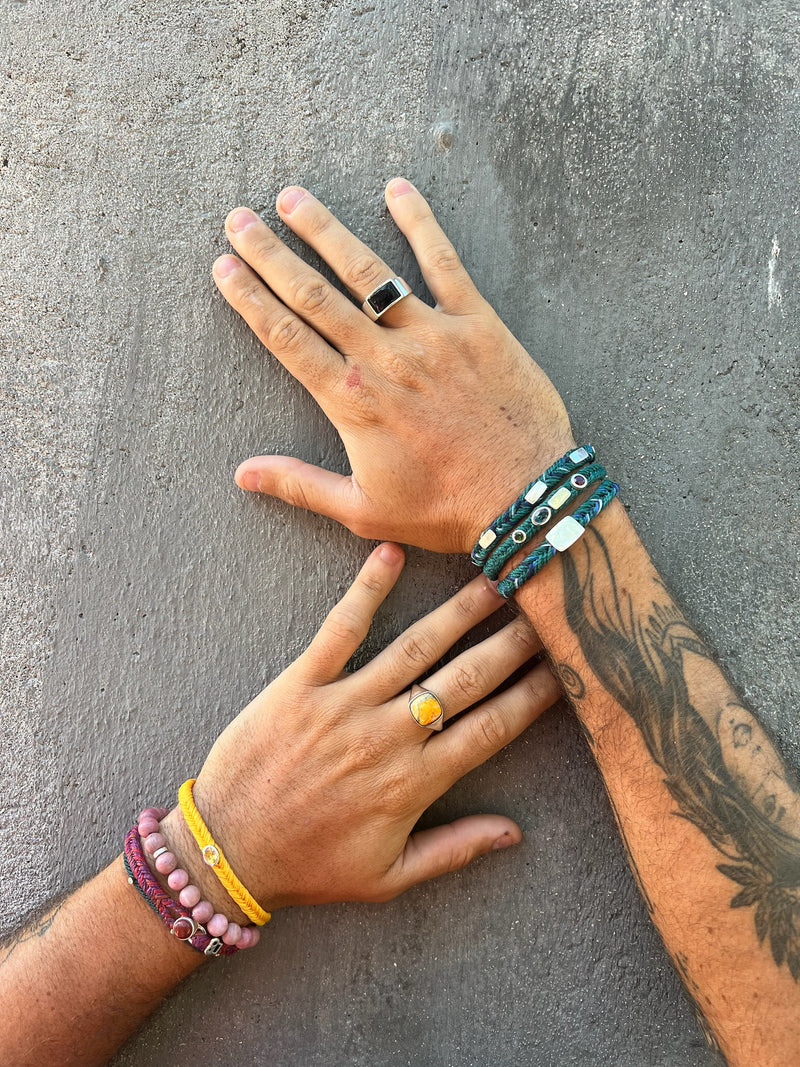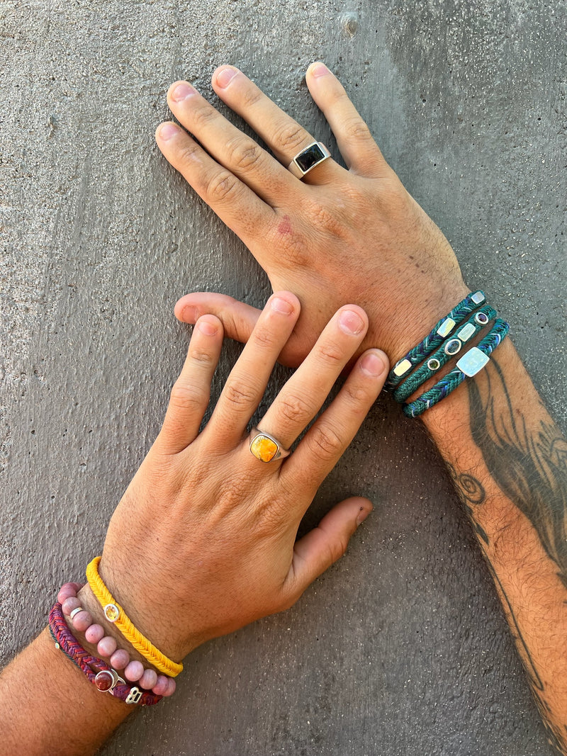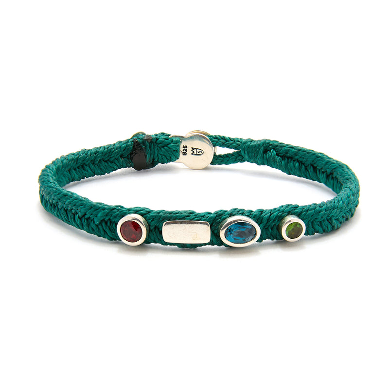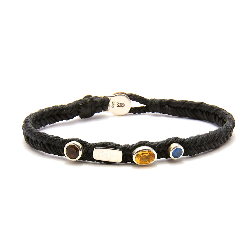 Fishtail Braided Bracelet with Sterling Silver and Mixed Gemstones