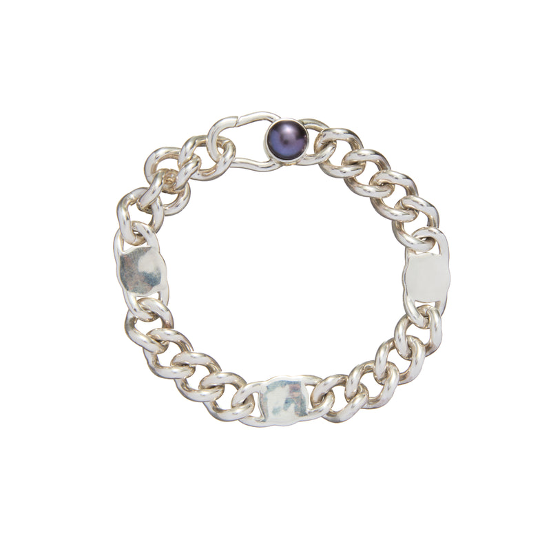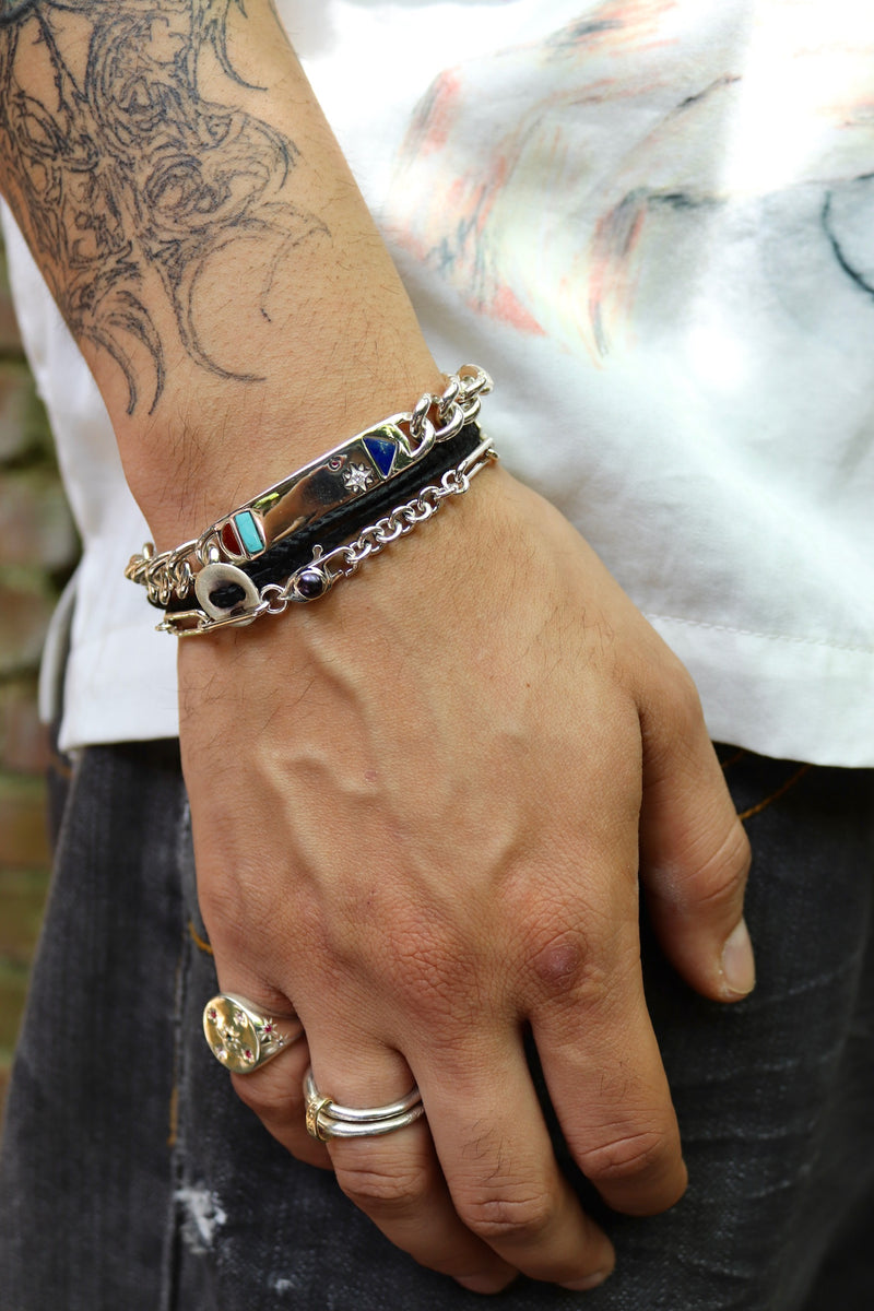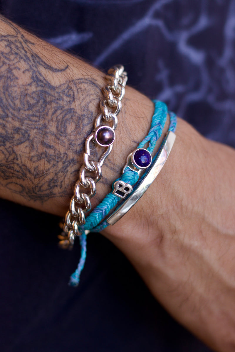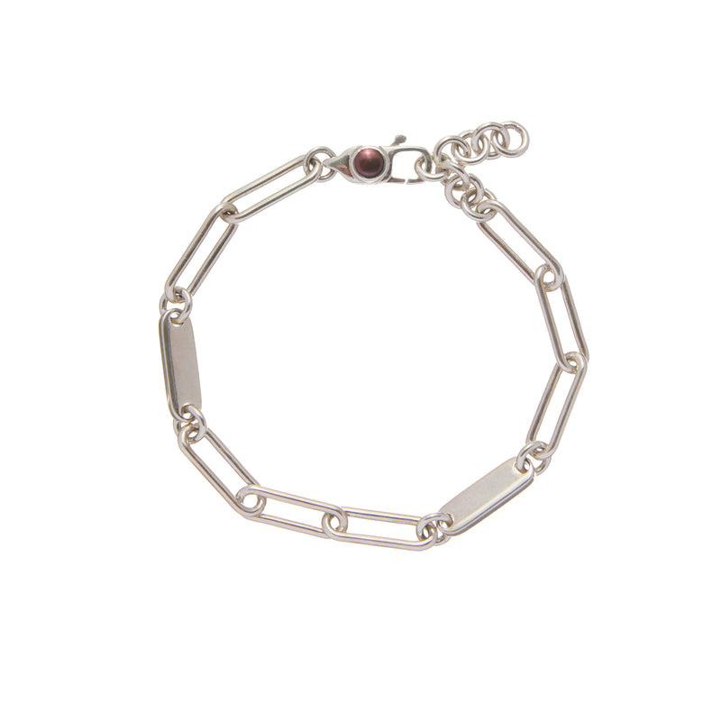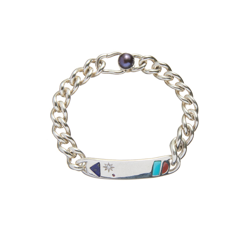Sterling Silver Curb Chain Bracelet with Stone Inlay