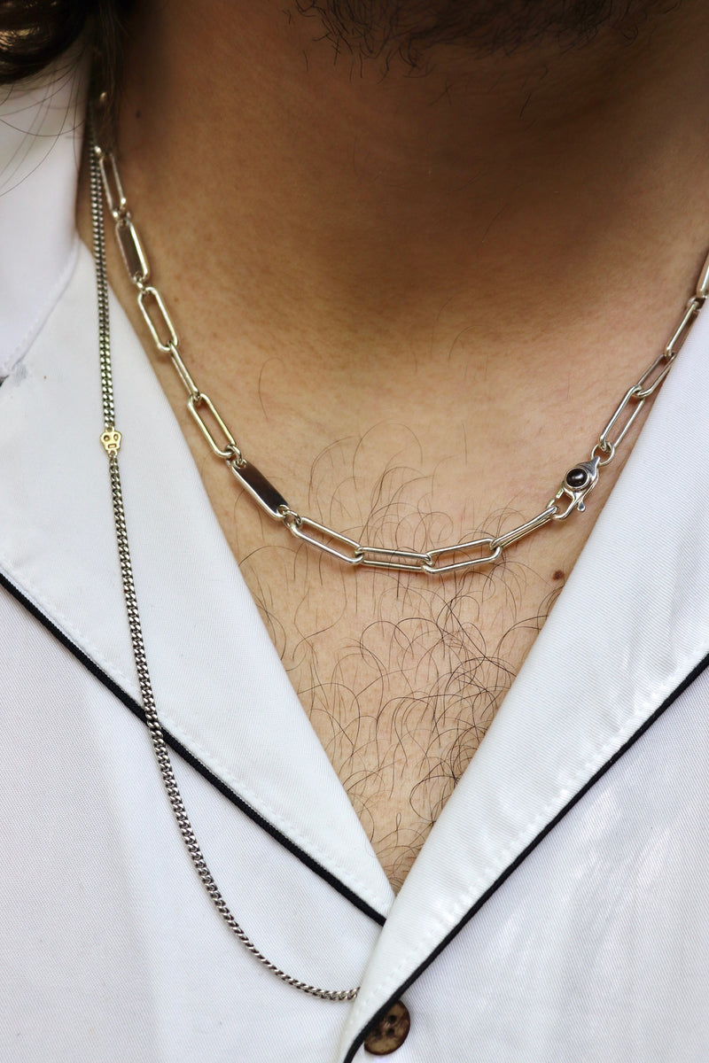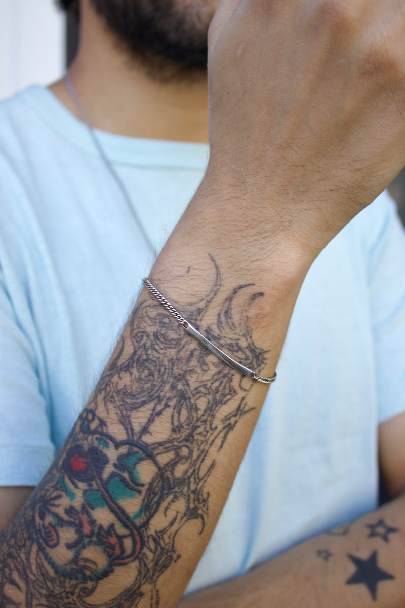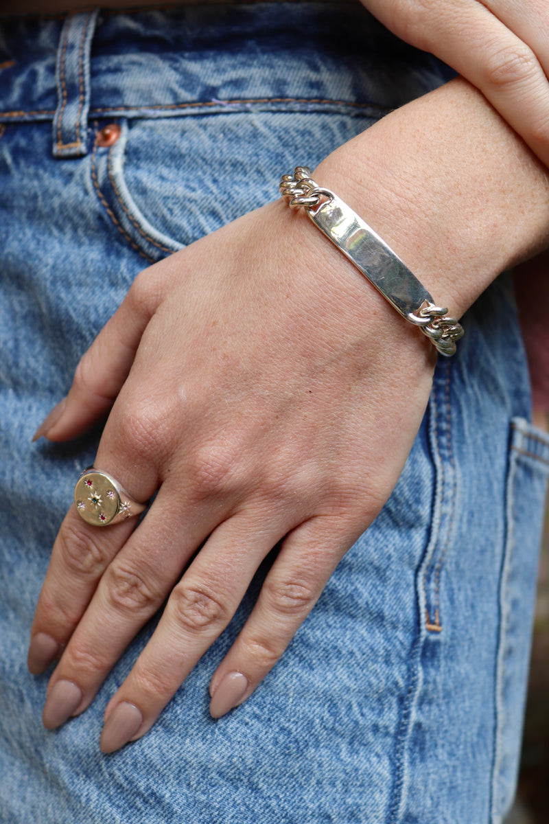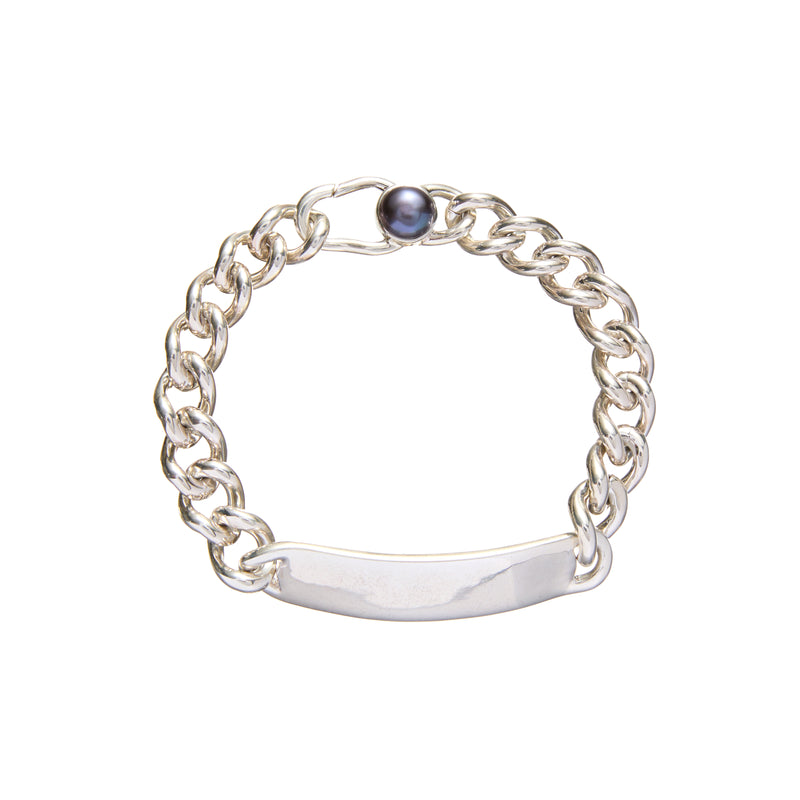 Sterling Silver Curb Chain Bracelet with Stone Inlay