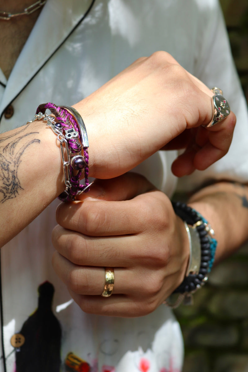 Fishtail Braided Bracelet with Sterling Silver and Mabe Pearl