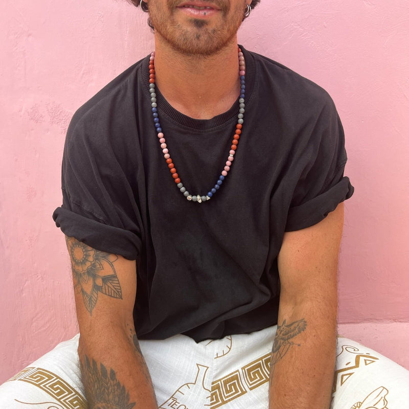 Mixed Stone Beads, Black Diamond, and Sterling Silver Charm Necklace