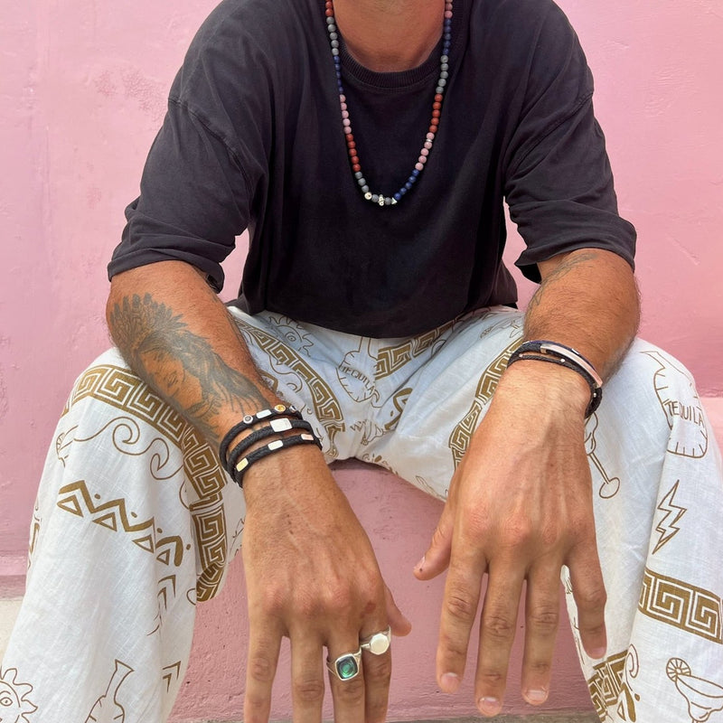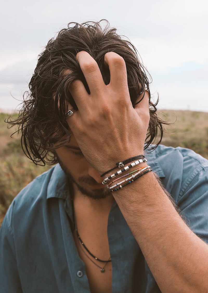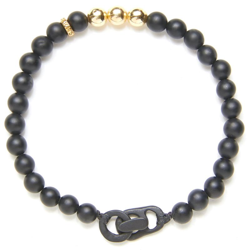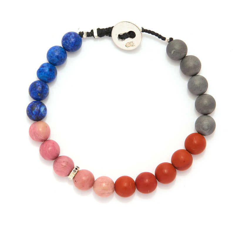 Mixed Stone Bead, Black Diamond, and Sterling Silver Bracelet