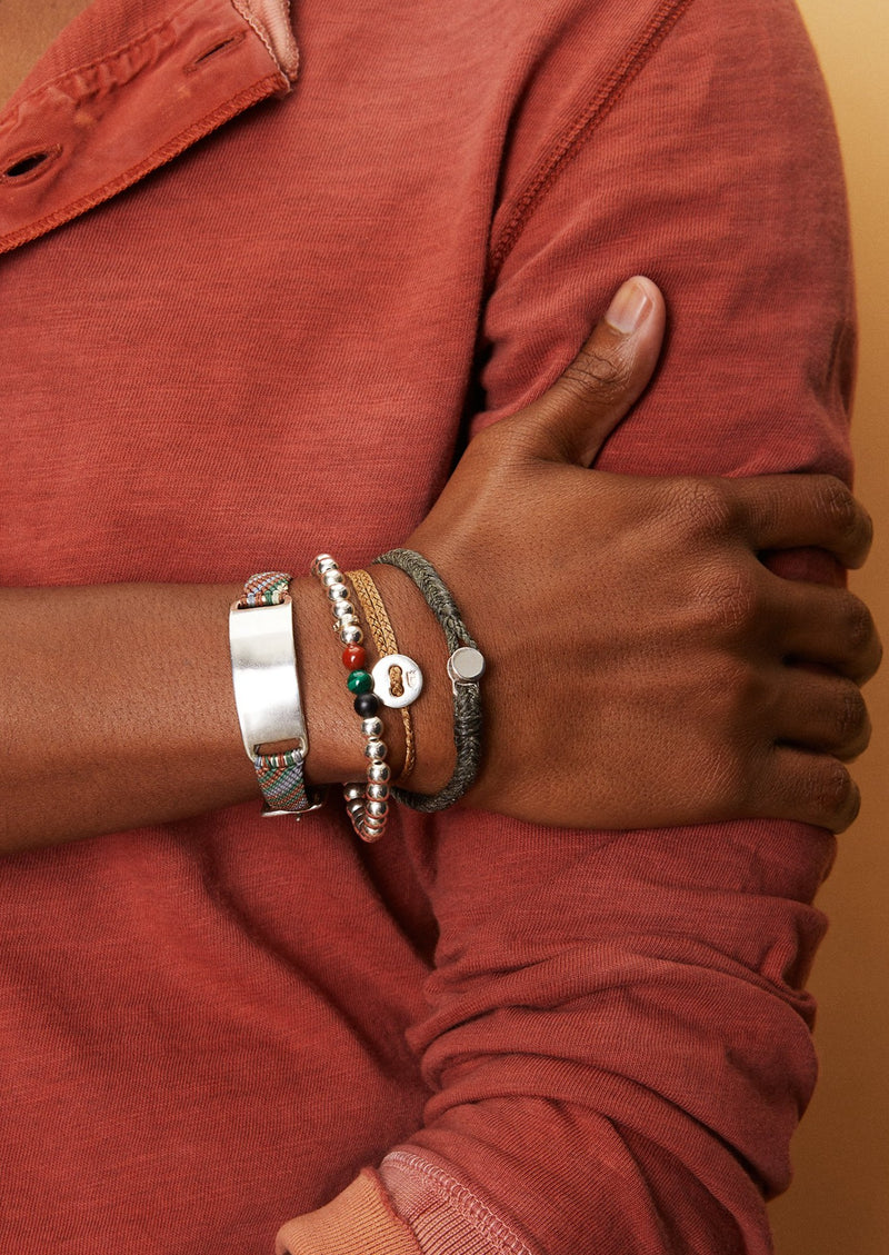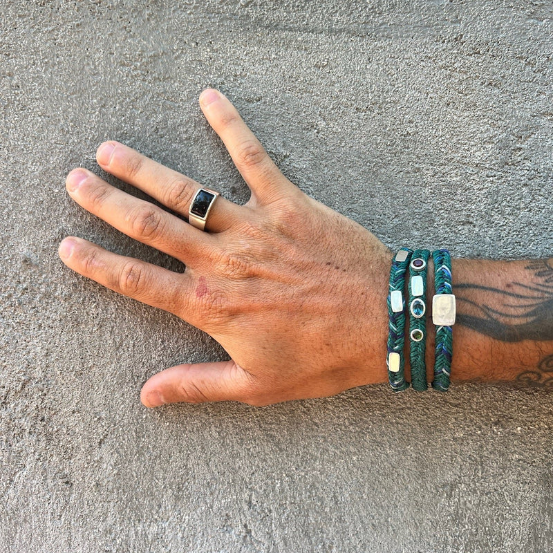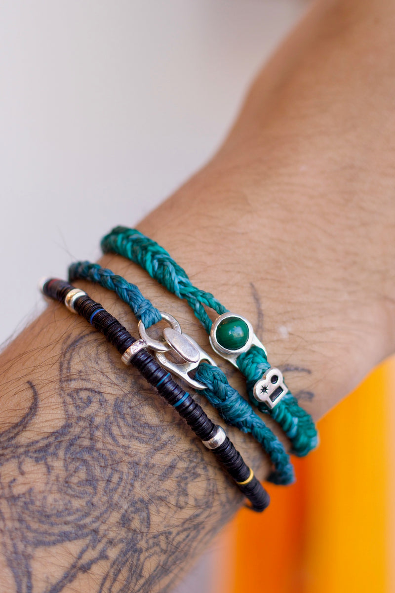 Fishtail Braided Bracelet with Sterling Silver and Malachite