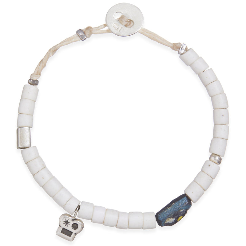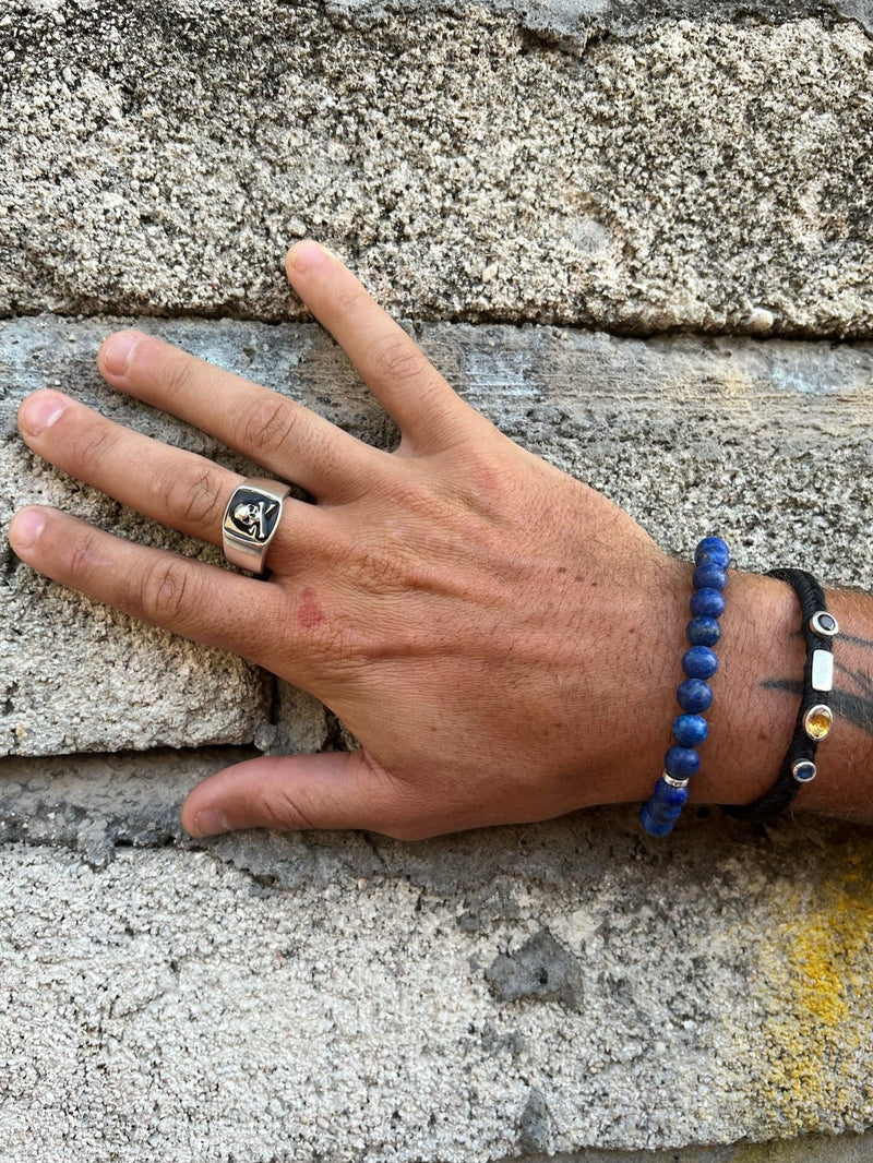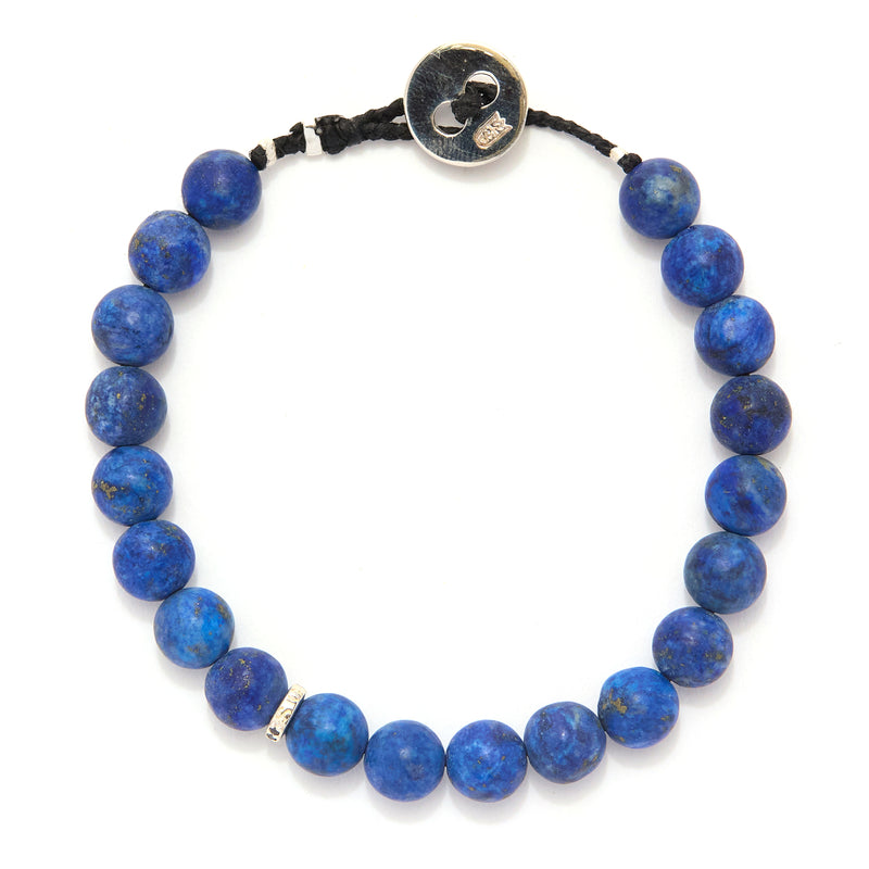 Lapis Bead, Black Diamond, and Sterling Silver Bracelet