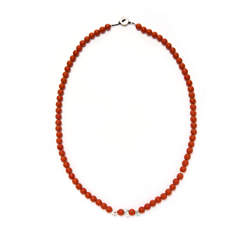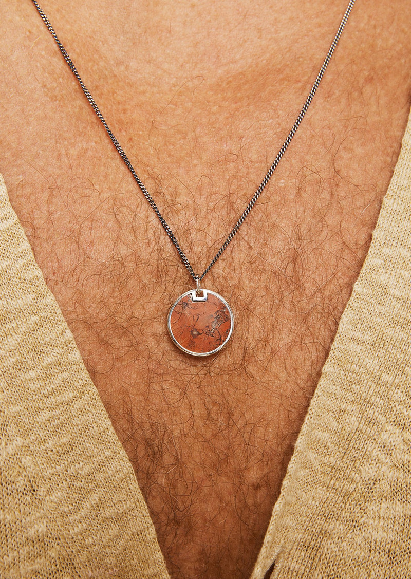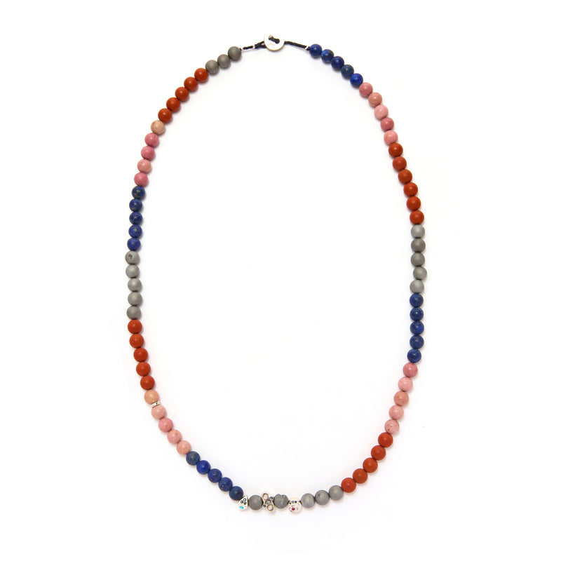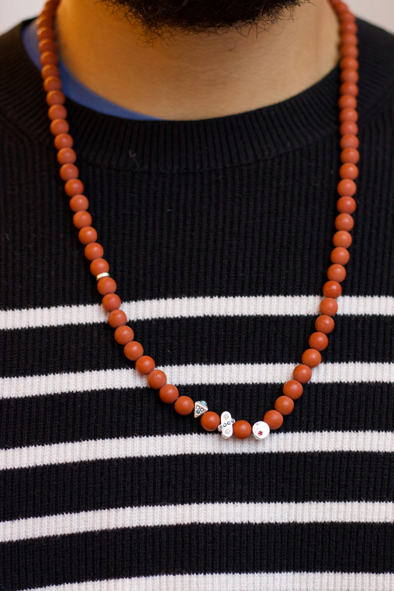 Poppy Jasper Bead, Black Diamond, and Sterling Silver Charm Necklace