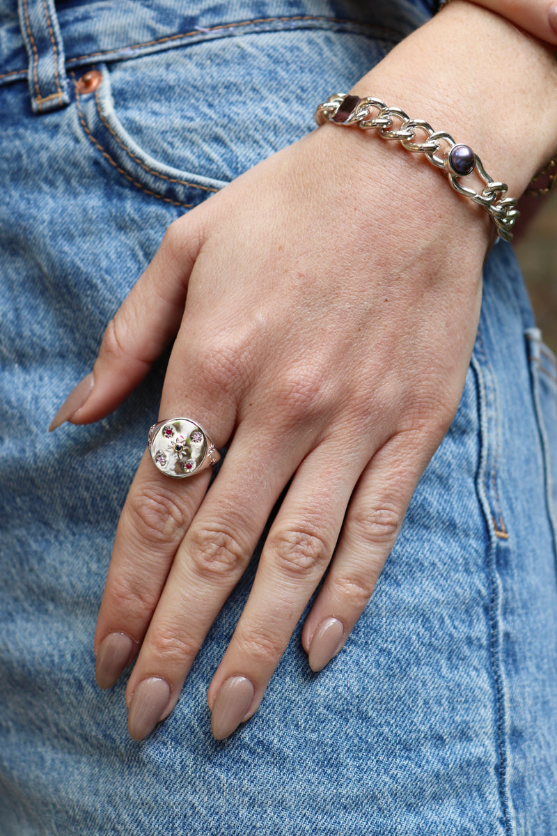 Sterling Silver, Gold, and Mixed Gem Signet Ring