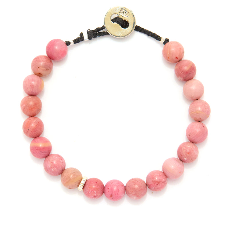 Rhodonite Bead, Black Diamond, and Sterling Silver Bracelet