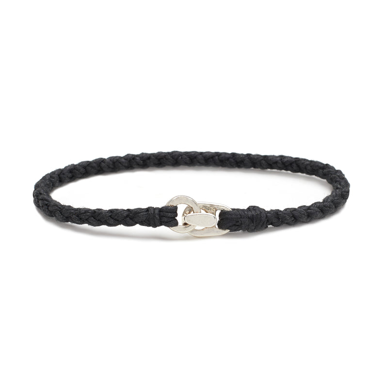 Fishtail Braided Bracelet with Sterling Silver and Freshwater Black Pearl