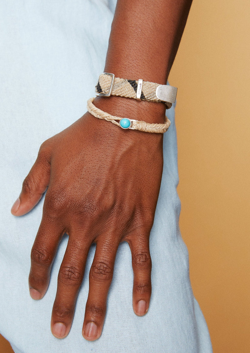 Fishtail Braided Bracelet with Sterling Silver and Turquoise