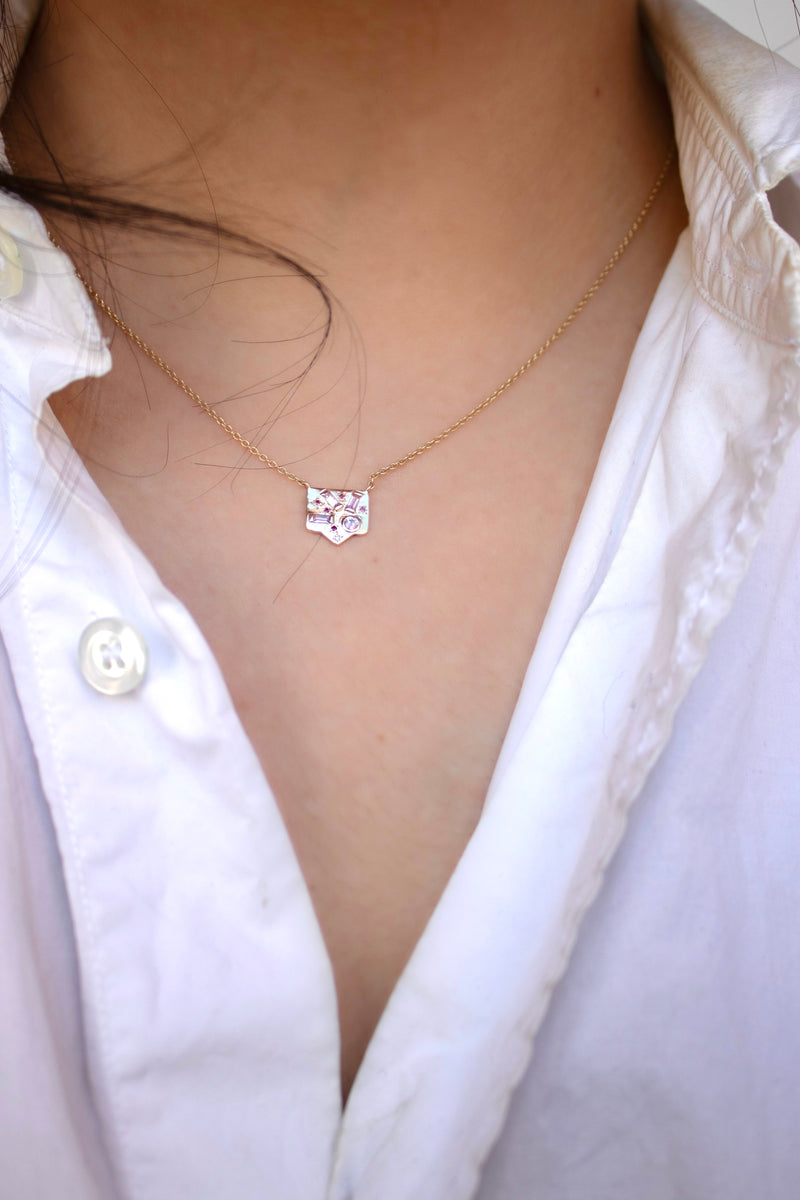 Square Pink Sapphire and Ruby Ray Plate Necklace