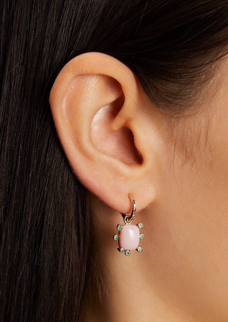 Pink opal and emerald charm