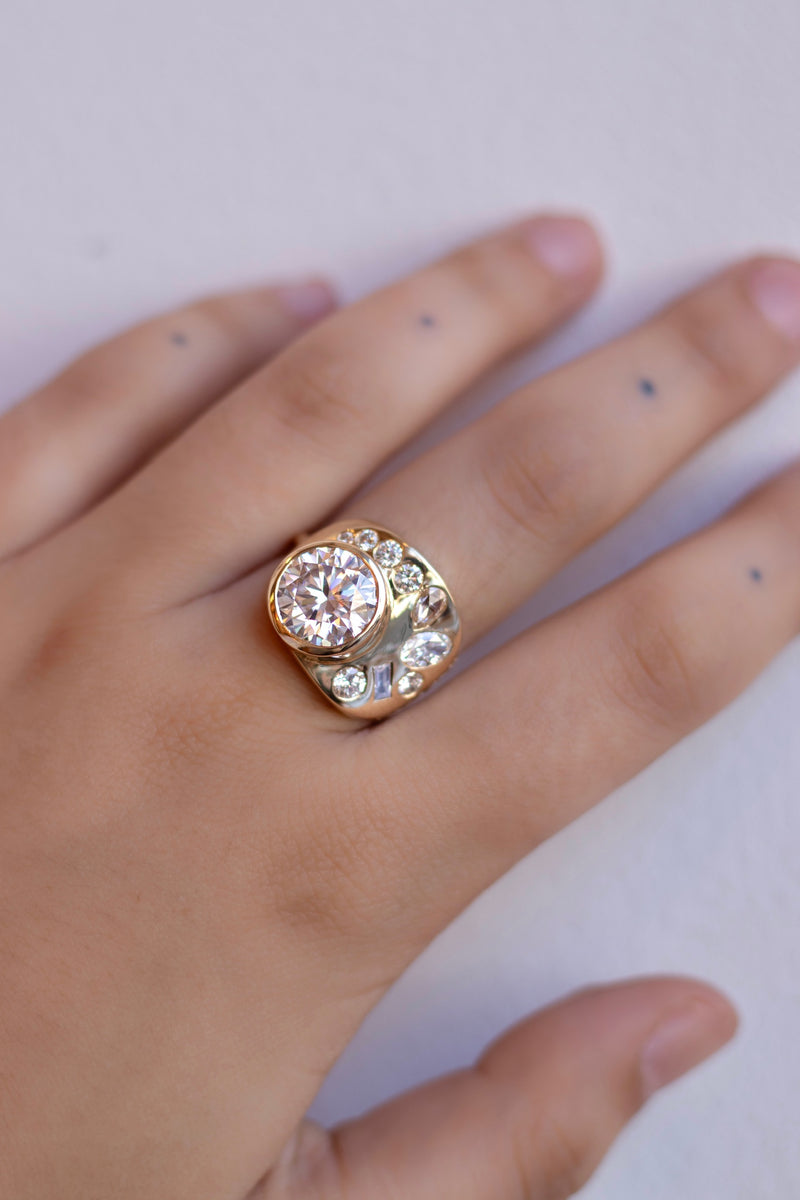 One-of-a-kind diamond and moissanite ring