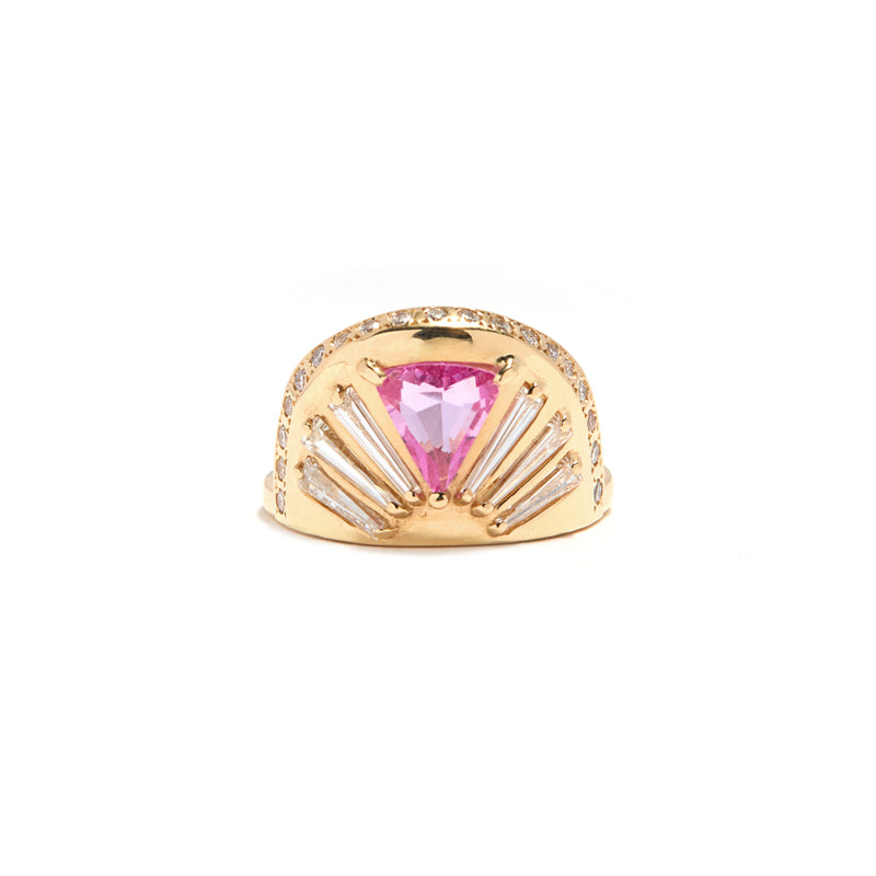 14k Yellow Gold Trillion Pink Sapphire Ring