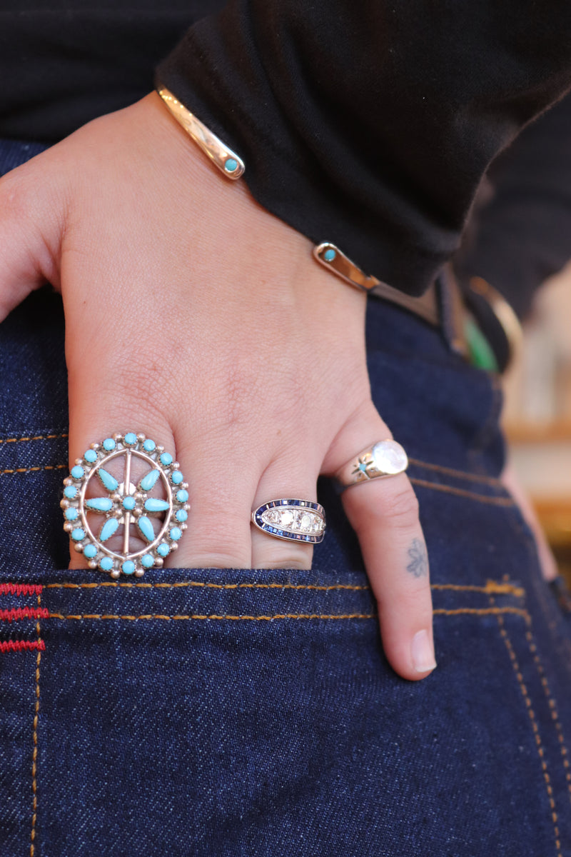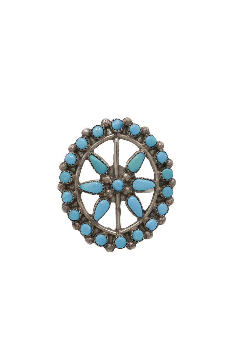 Vintage Zuni Sterling Silver and Turquoise Petit Point Ring