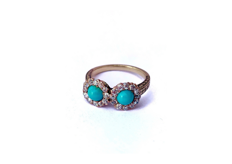 Vintage Victorian 14k Ring with Turquoise and Diamonds