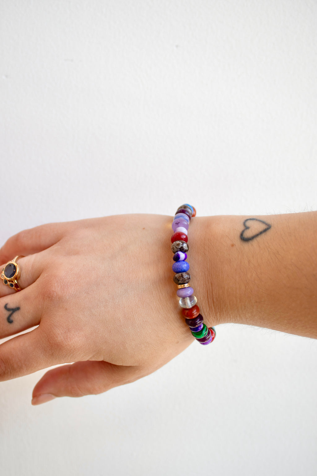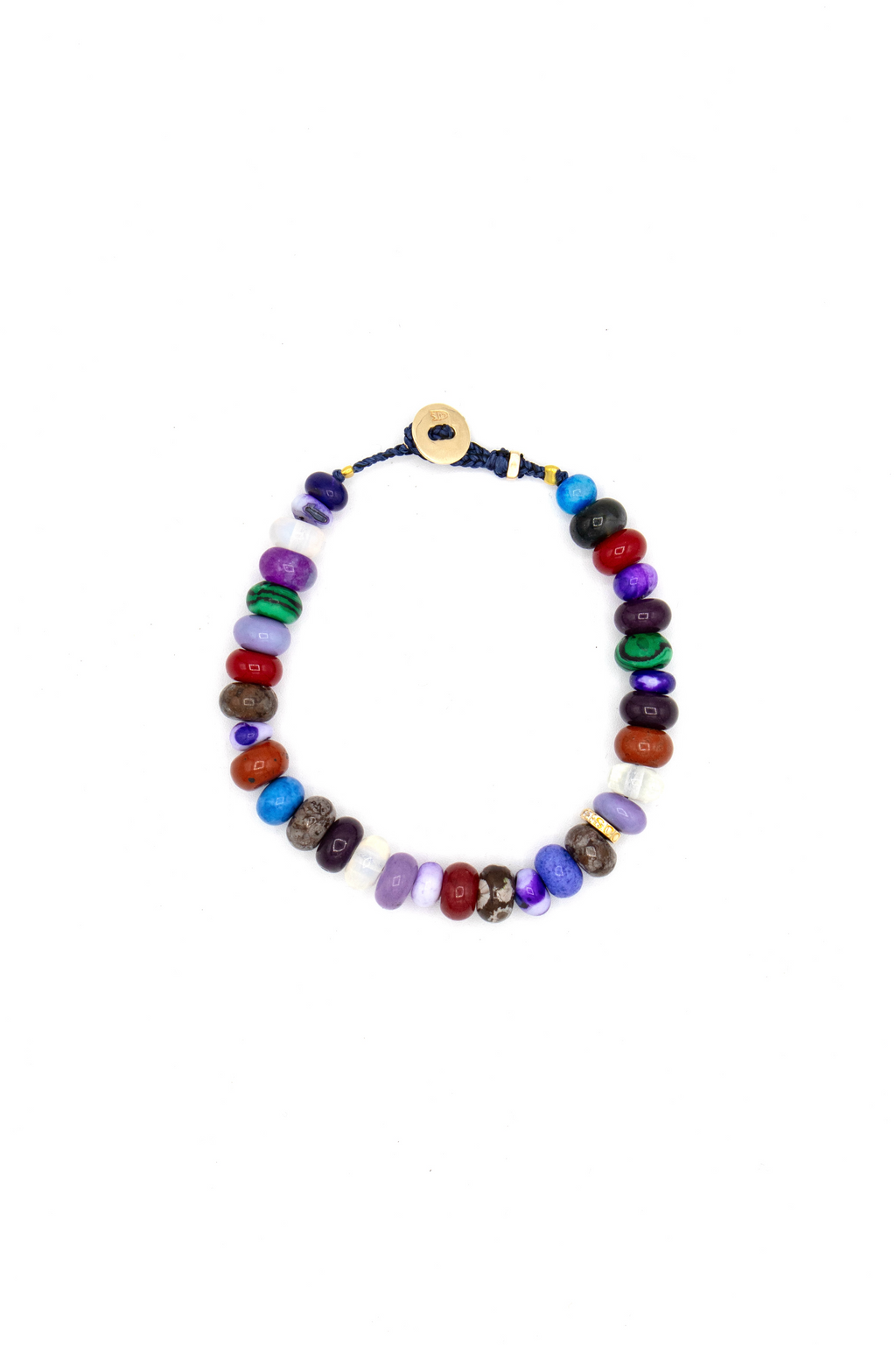 Luxurious and playful, our Candy Collection strikes the perfect balance between casual style and refined craft. Designed with a colorful "Twilight Blend" of gemstone beads like malachite, lapis, jasper, and tiger's eye. A solid gold or silver button closure and diamond bead add an extra dimension of sparkle.