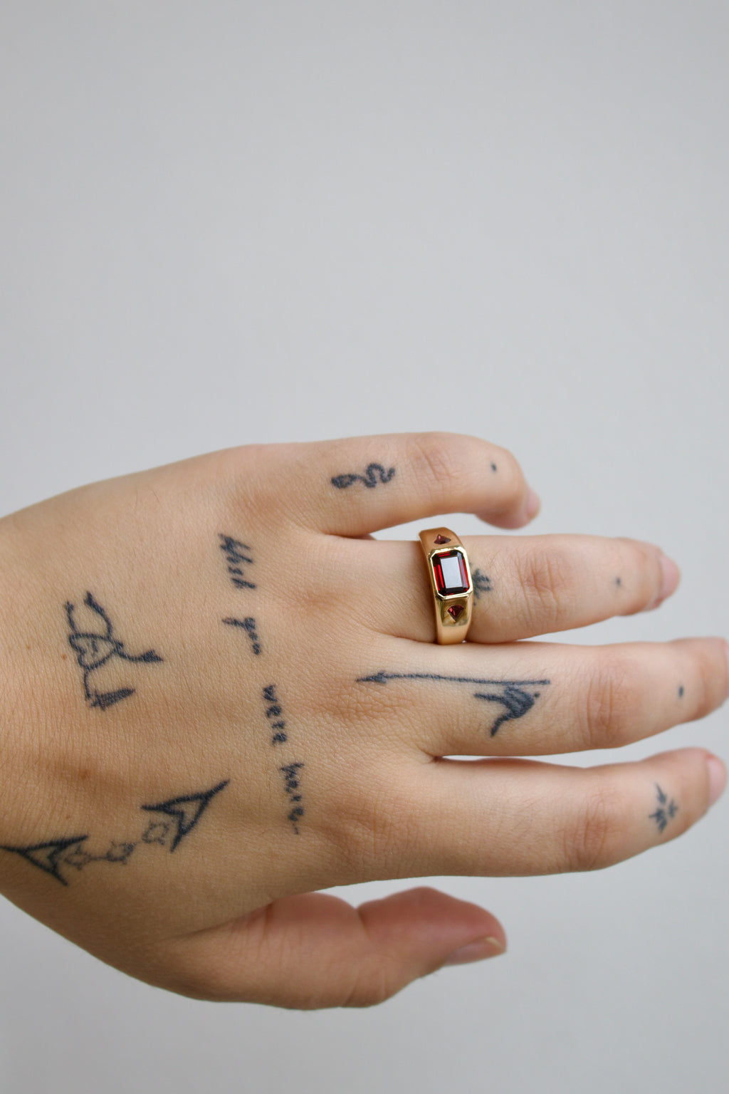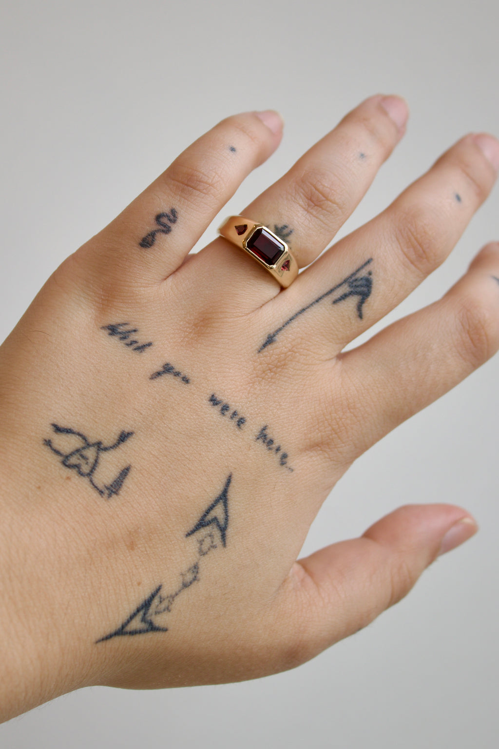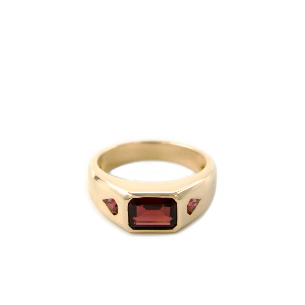 Emerald cut Rhodolite Garnet Signet Ring in 14ky