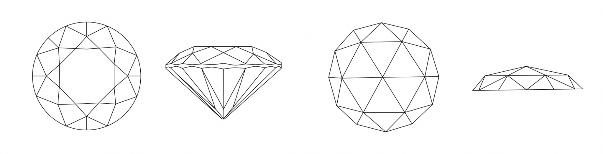 “Cut” refers to the way the rough gem was sliced and faceted to increase its brilliance. Different cut names are a way of labeling different proportions and shapes. A brilliant cut diamond and a rose cut diamond both reflect light differently. Brilliants shine and are super glittery in the sun, while rose cuts have a soft, romantic, subtle sparkle. Baguette cuts are rectangular shaped stones reminiscent of Art Deco. Marquise cuts are boat shaped, and so on.